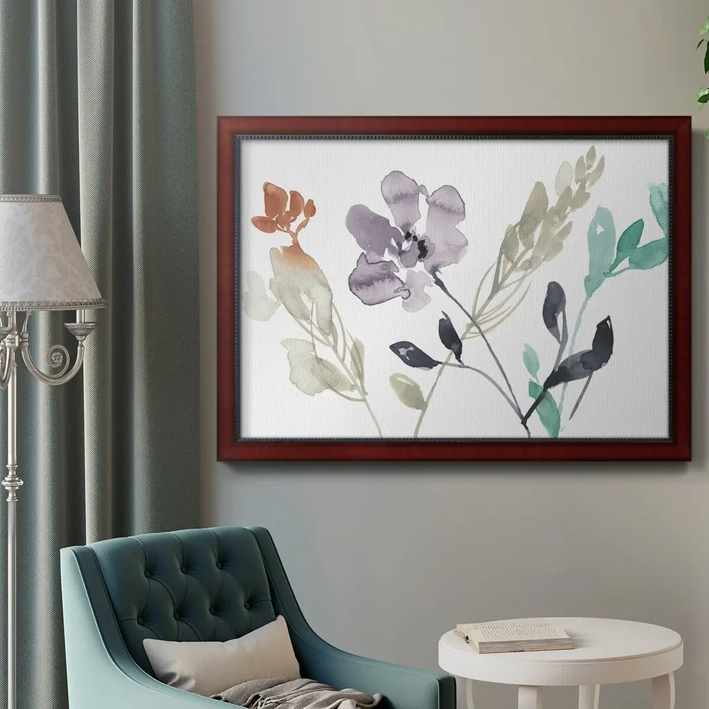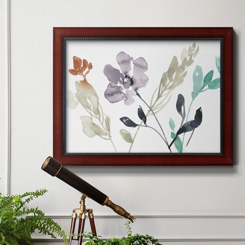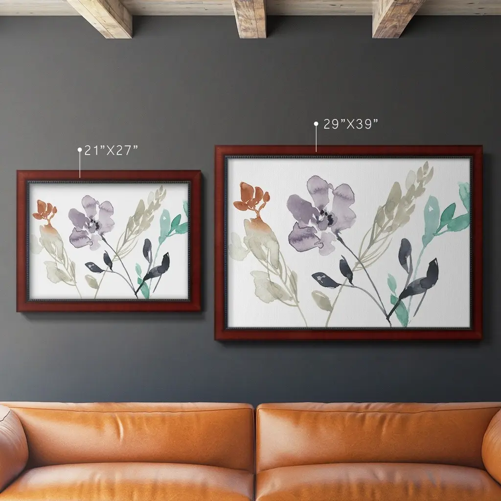 Flowers in Fall I Premium Framed Canvas- Ready to Hang A Premium Framed Canvas created to last. Framed in distressed wood and available in an array of sizes and colors Featuring a beveled a solid wood stretcher bar, each piece comes ready to hand 3 SIZES AVAILABLE 16''X20'' - Overall Size 18'X27'' - Overall Size 24''x36'' - Overall Size Each piece is made to order. Each piece comes with hanging hardware. Made in the USA Ready to Hang Giclee Paper Print Acrylic Glass Beveled Matt Board