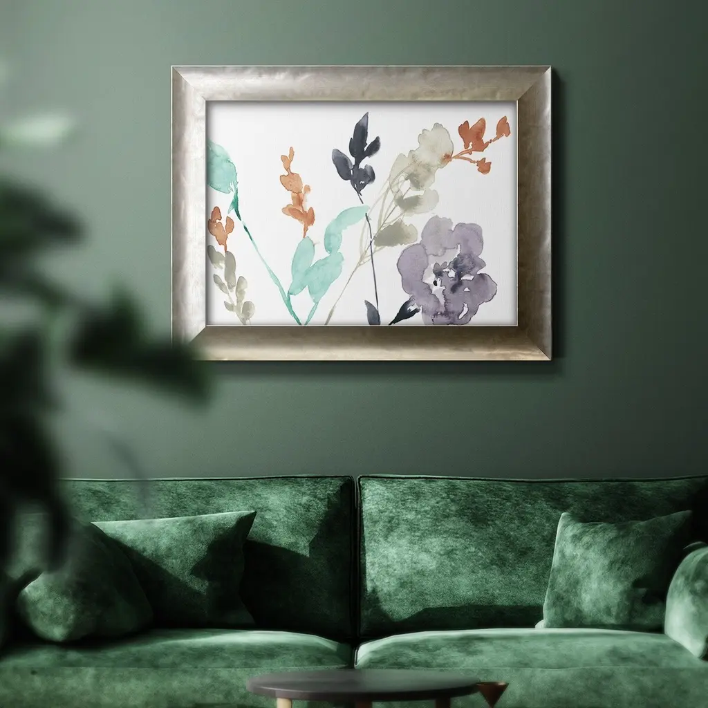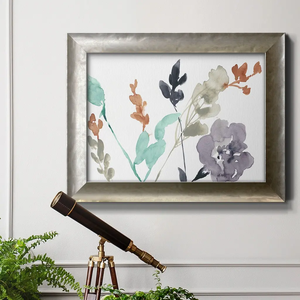 Flowers in Fall II Premium Framed Canvas- Ready to Hang A Premium Framed Canvas created to last. Framed in distressed wood and available in an array of sizes and colors Featuring a beveled a solid wood stretcher bar, each piece comes ready to hand 3 SIZES AVAILABLE 16''X20'' - Overall Size 18'X27'' - Overall Size 24''x36'' - Overall Size Each piece is made to order. Each piece comes with hanging hardware. Made in the USA Ready to Hang Giclee Paper Print Acrylic Glass Beveled Matt Board