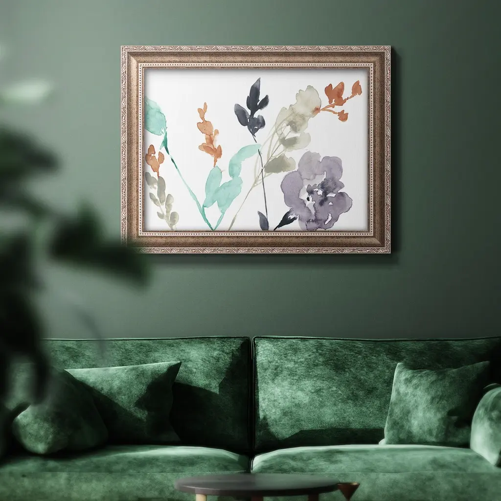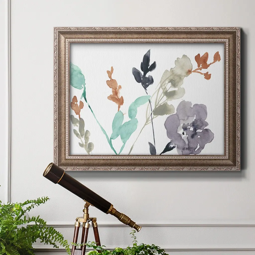 Flowers in Fall II Premium Framed Canvas- Ready to Hang A Premium Framed Canvas created to last. Framed in distressed wood and available in an array of sizes and colors Featuring a beveled a solid wood stretcher bar, each piece comes ready to hand 3 SIZES AVAILABLE 16''X20'' - Overall Size 18'X27'' - Overall Size 24''x36'' - Overall Size Each piece is made to order. Each piece comes with hanging hardware. Made in the USA Ready to Hang Giclee Paper Print Acrylic Glass Beveled Matt Board