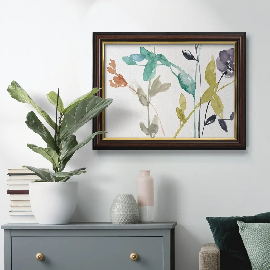 Flowers in Fall III Premium Framed Canvas- Ready to Hang A Premium Framed Canvas created to last. Framed in distressed wood and available in an array of sizes and colors Featuring a beveled a solid wood stretcher bar, each piece comes ready to hand 3 SIZES AVAILABLE 16''X20'' - Overall Size 18'X27'' - Overall Size 24''x36'' - Overall Size Each piece is made to order. Each piece comes with hanging hardware. Made in the USA Ready to Hang Giclee Paper Print Acrylic Glass Beveled Matt Board