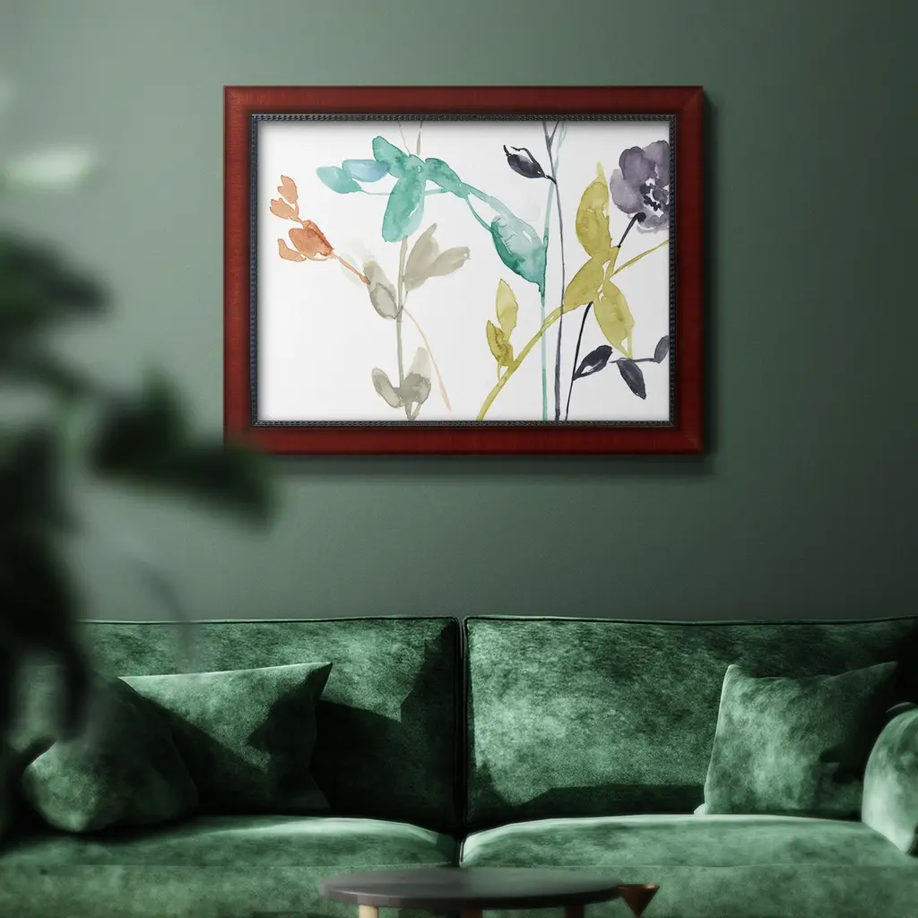 Flowers in Fall III Premium Framed Canvas- Ready to Hang A Premium Framed Canvas created to last. Framed in distressed wood and available in an array of sizes and colors Featuring a beveled a solid wood stretcher bar, each piece comes ready to hand 3 SIZES AVAILABLE 16''X20'' - Overall Size 18'X27'' - Overall Size 24''x36'' - Overall Size Each piece is made to order. Each piece comes with hanging hardware. Made in the USA Ready to Hang Giclee Paper Print Acrylic Glass Beveled Matt Board