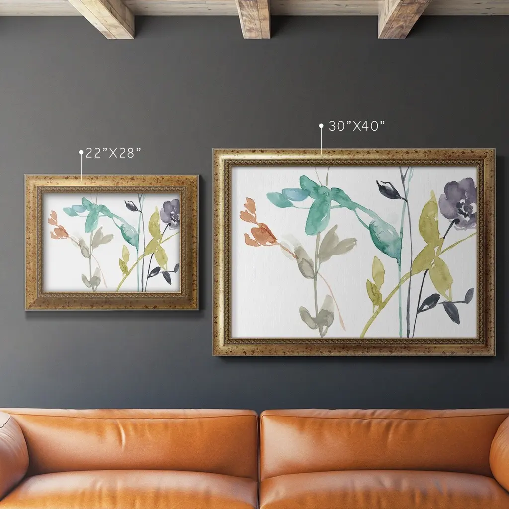 Flowers in Fall III Premium Framed Canvas- Ready to Hang A Premium Framed Canvas created to last. Framed in distressed wood and available in an array of sizes and colors Featuring a beveled a solid wood stretcher bar, each piece comes ready to hand 3 SIZES AVAILABLE 16''X20'' - Overall Size 18'X27'' - Overall Size 24''x36'' - Overall Size Each piece is made to order. Each piece comes with hanging hardware. Made in the USA Ready to Hang Giclee Paper Print Acrylic Glass Beveled Matt Board