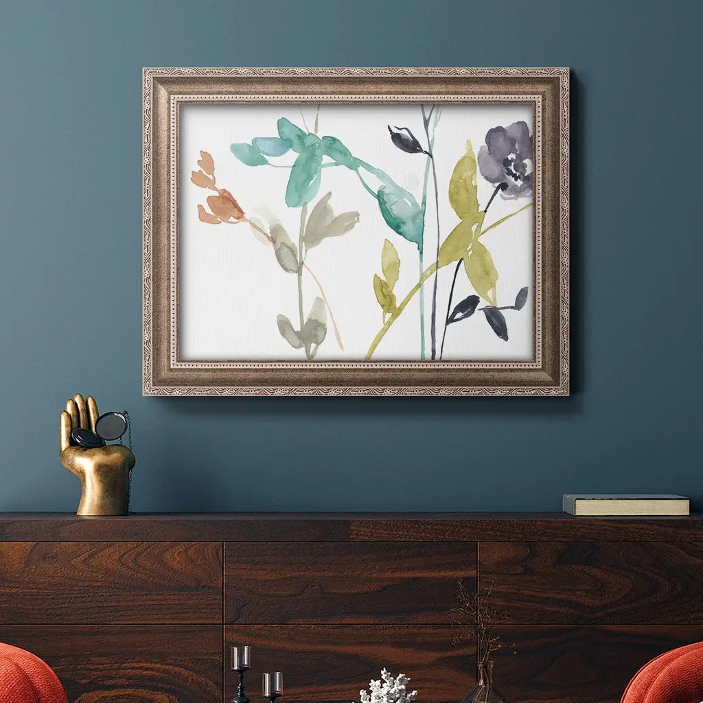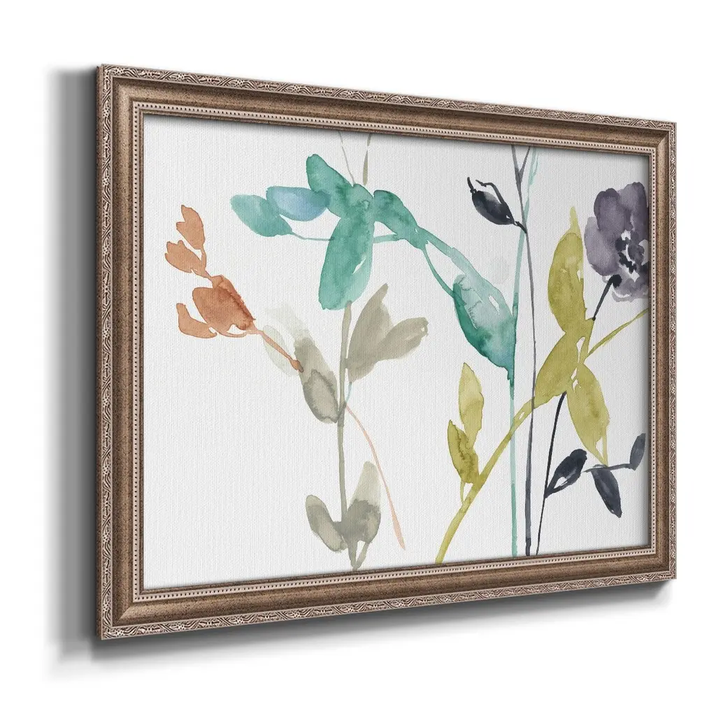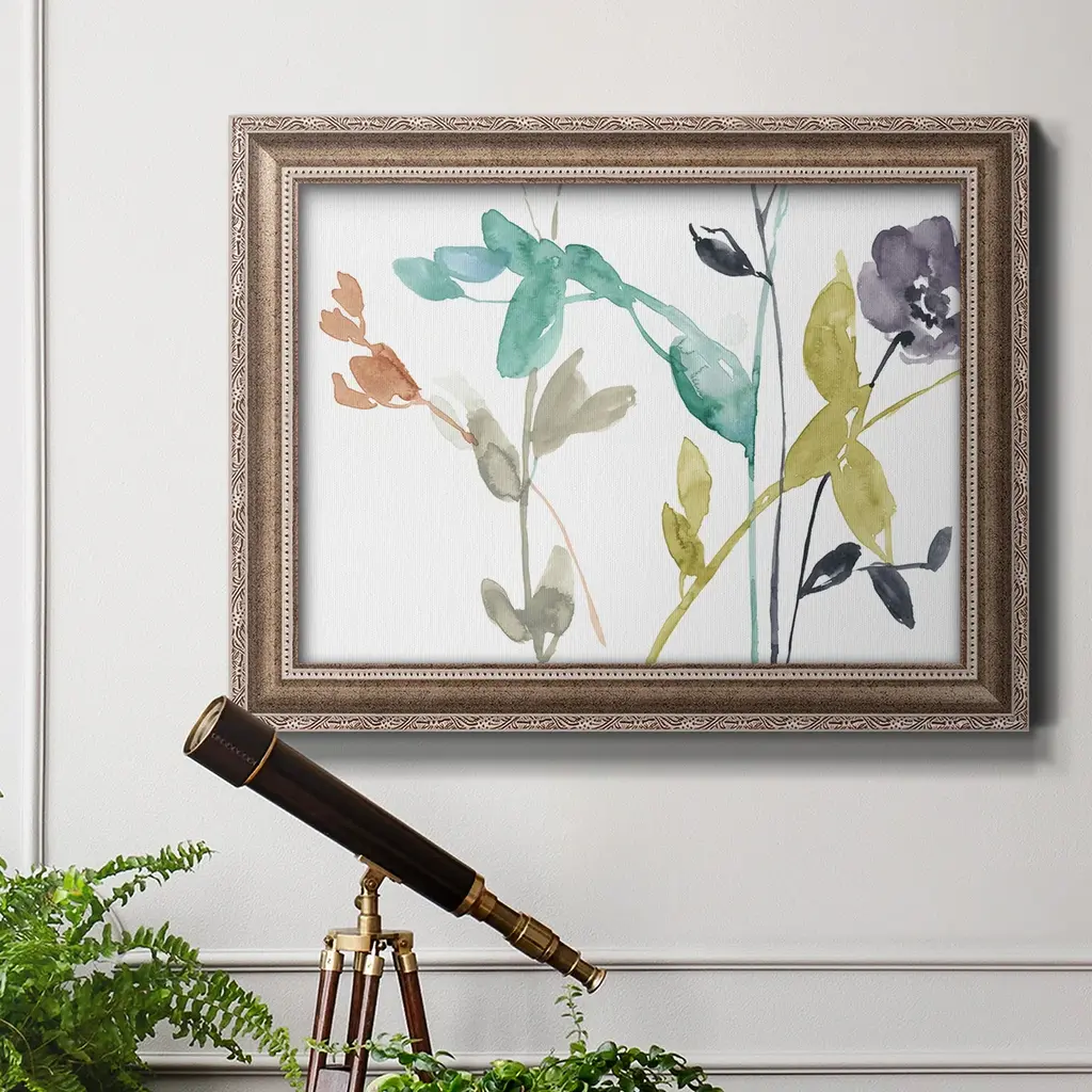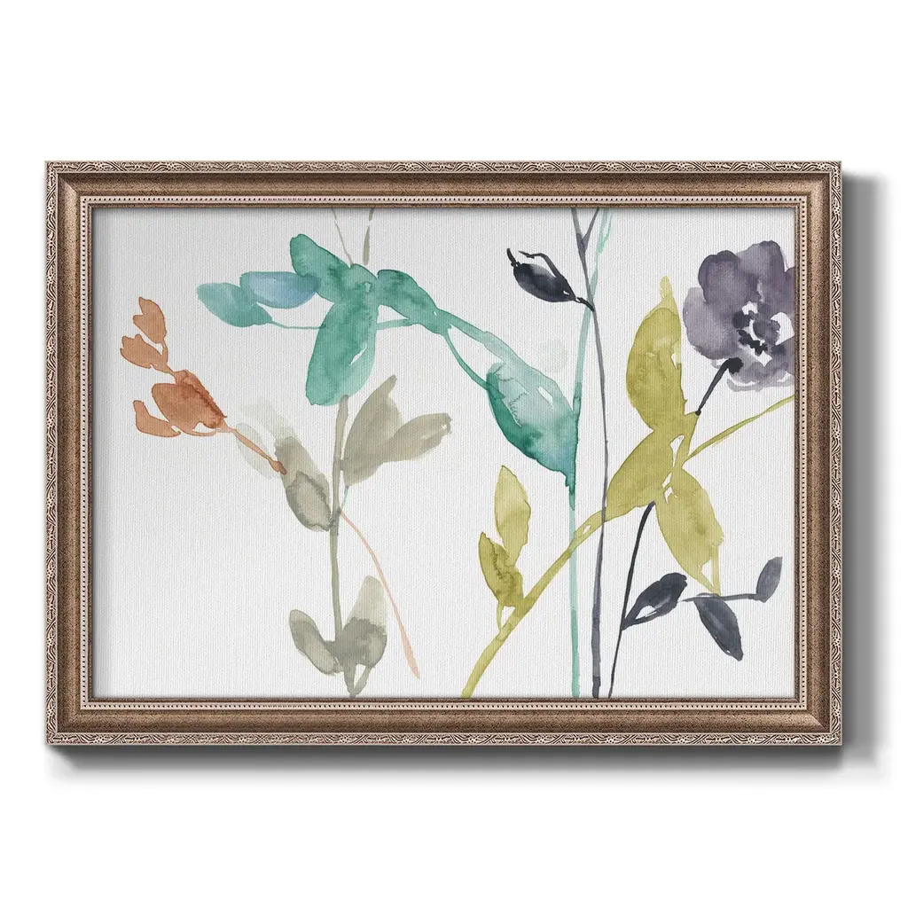 Flowers in Fall III Premium Framed Canvas- Ready to Hang A Premium Framed Canvas created to last. Framed in distressed wood and available in an array of sizes and colors Featuring a beveled a solid wood stretcher bar, each piece comes ready to hand 3 SIZES AVAILABLE 16''X20'' - Overall Size 18'X27'' - Overall Size 24''x36'' - Overall Size Each piece is made to order. Each piece comes with hanging hardware. Made in the USA Ready to Hang Giclee Paper Print Acrylic Glass Beveled Matt Board