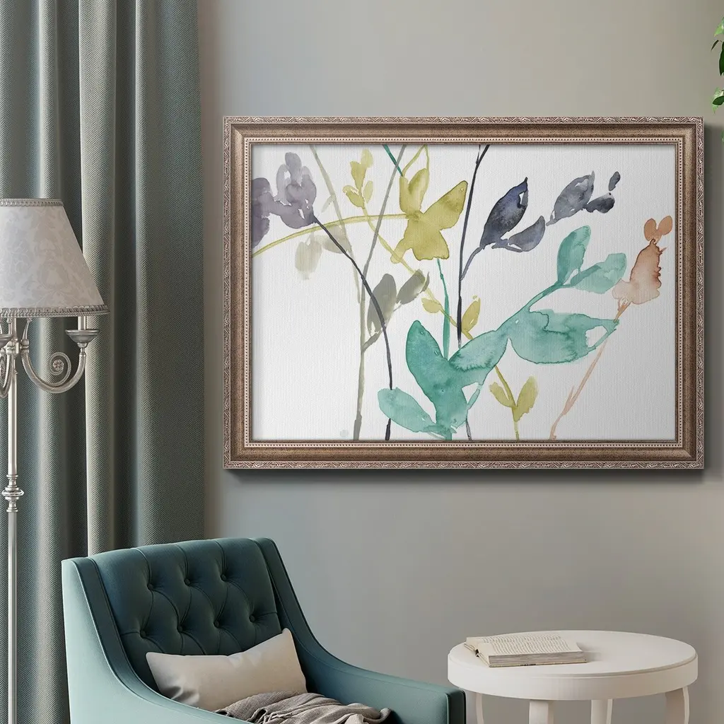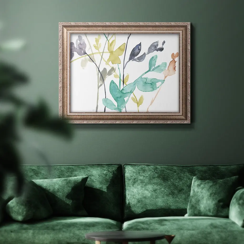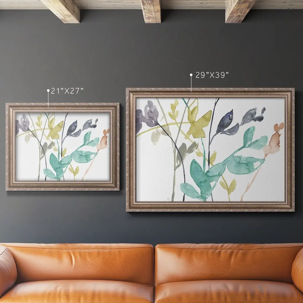Flowers in Fall IV Premium Framed Canvas- Ready to Hang A Premium Framed Canvas created to last. Framed in distressed wood and available in an array of sizes and colors Featuring a beveled a solid wood stretcher bar, each piece comes ready to hand 3 SIZES AVAILABLE 16''X20'' - Overall Size 18'X27'' - Overall Size 24''x36'' - Overall Size Each piece is made to order. Each piece comes with hanging hardware. Made in the USA Ready to Hang Giclee Paper Print Acrylic Glass Beveled Matt Board