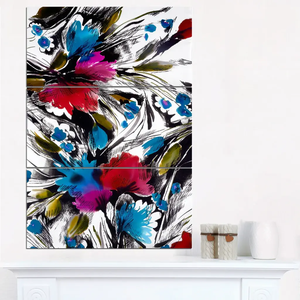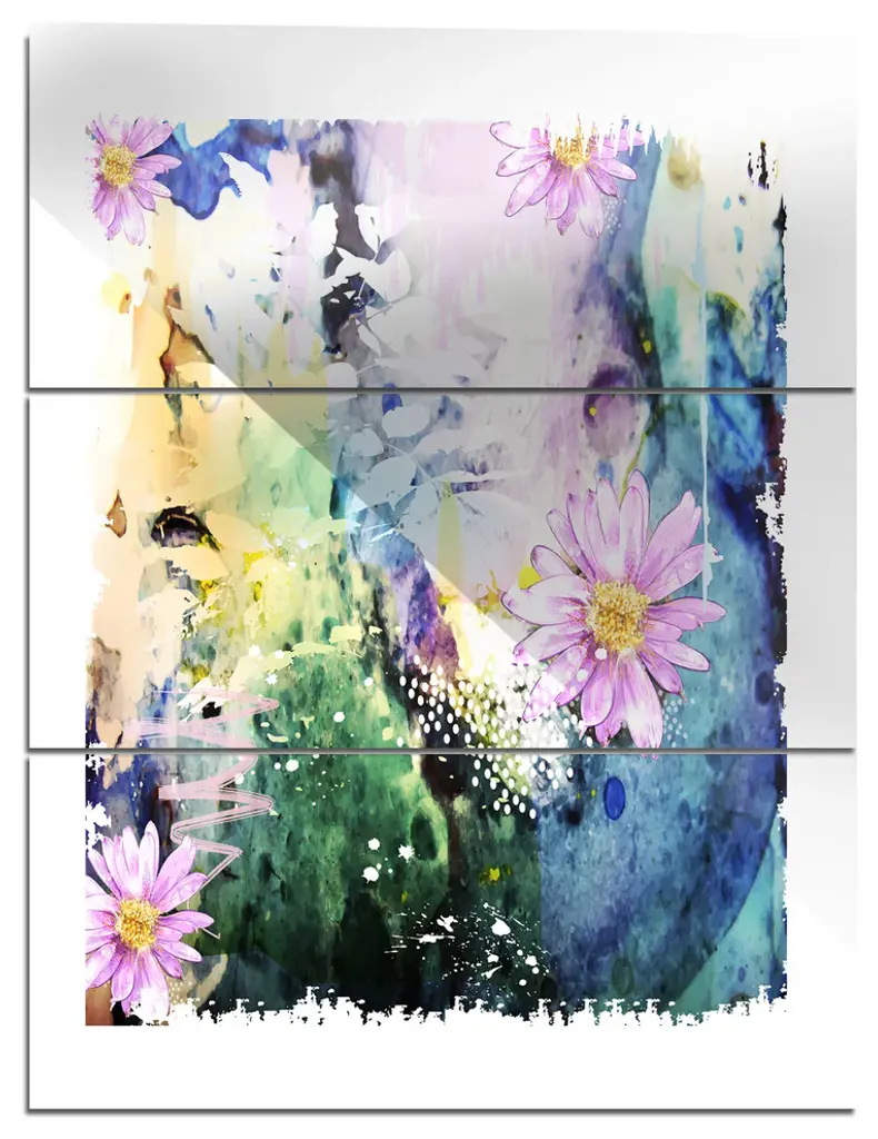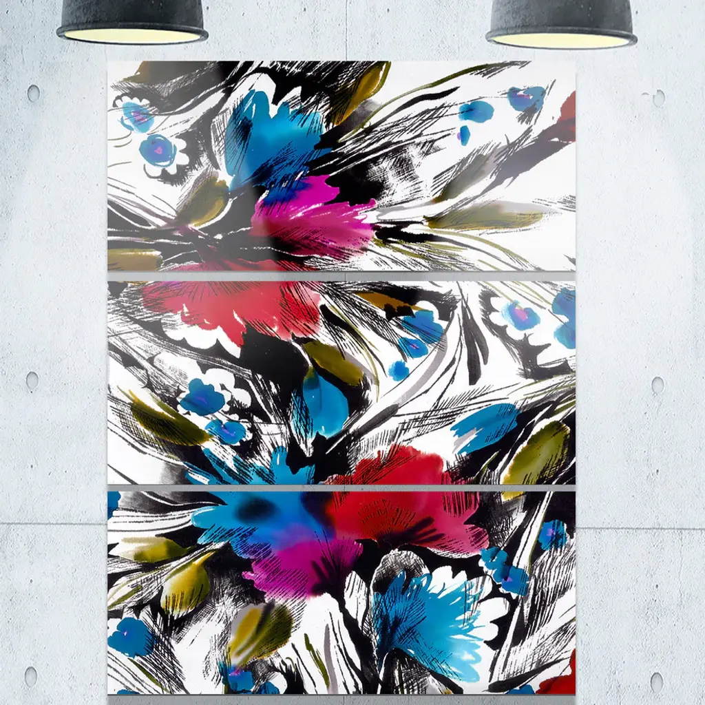 "Flowers With Fusion Of Colors" Digital Metal Wall Art, 3 Panels, 28"x36"