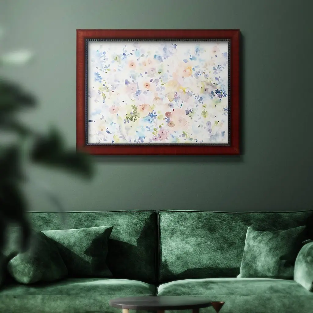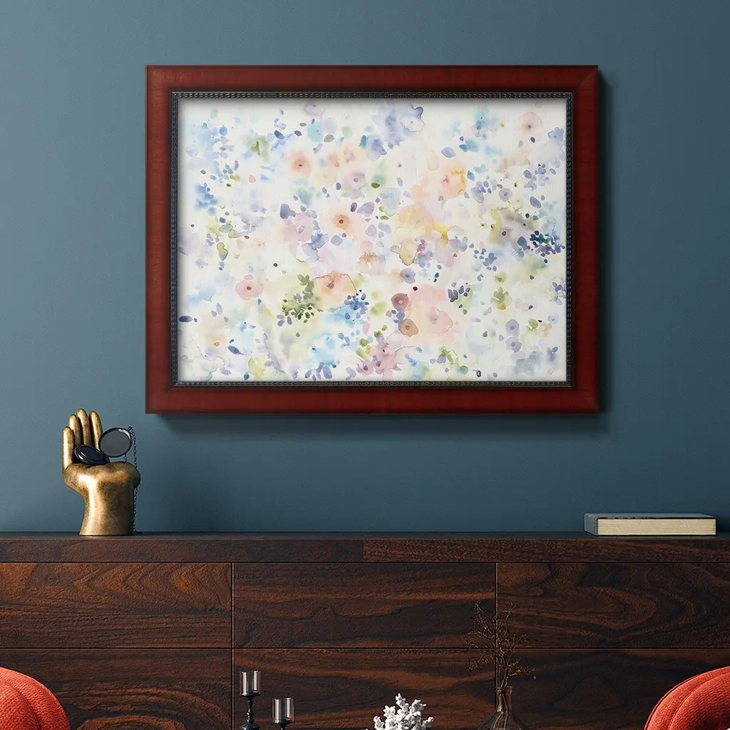 Flowing Colors I Premium Framed Canvas- Ready to Hang A Premium Framed Canvas created to last. Framed in distressed wood and available in an array of sizes and colors Featuring a beveled a solid wood stretcher bar, each piece comes ready to hand 3 SIZES AVAILABLE 16''X20'' - Overall Size 18'X27'' - Overall Size 24''x36'' - Overall Size Each piece is made to order. Each piece comes with hanging hardware. Made in the USA Ready to Hang Giclee Paper Print Acrylic Glass Beveled Matt Board