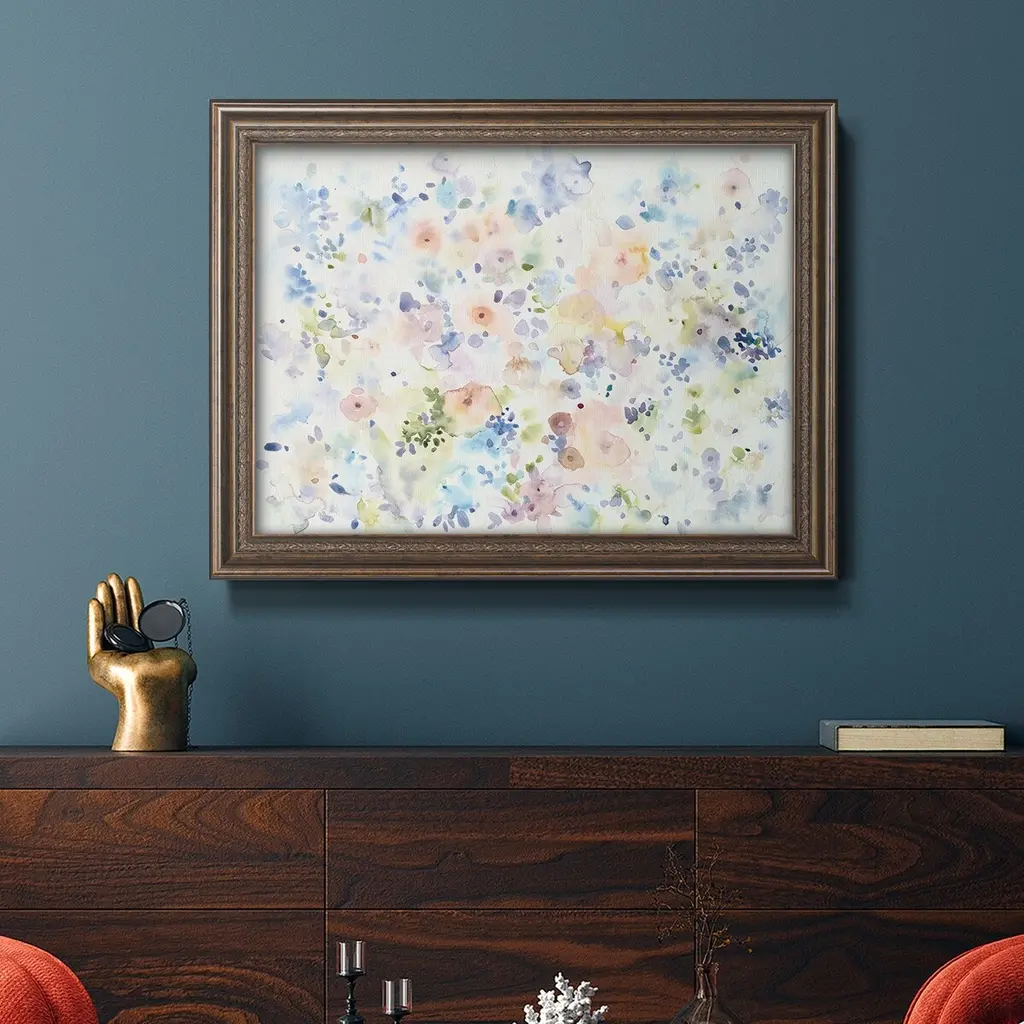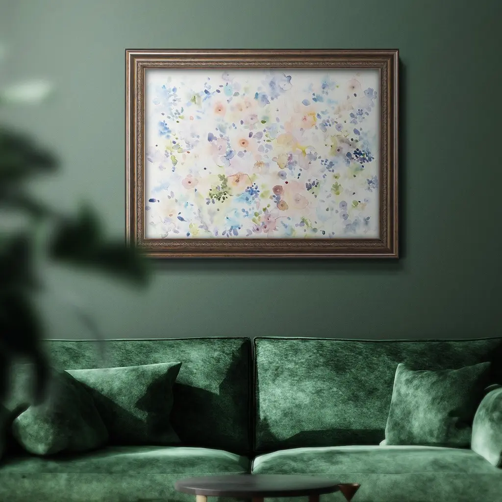 Flowing Colors I Premium Framed Canvas- Ready to Hang A Premium Framed Canvas created to last. Framed in distressed wood and available in an array of sizes and colors Featuring a beveled a solid wood stretcher bar, each piece comes ready to hand 3 SIZES AVAILABLE 16''X20'' - Overall Size 18'X27'' - Overall Size 24''x36'' - Overall Size Each piece is made to order. Each piece comes with hanging hardware. Made in the USA Ready to Hang Giclee Paper Print Acrylic Glass Beveled Matt Board