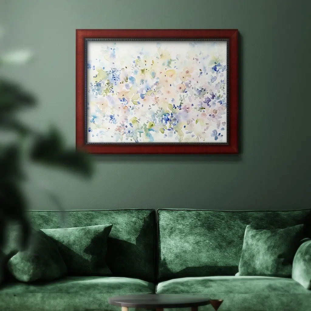 Flowing Colors II Premium Framed Canvas- Ready to Hang A Premium Framed Canvas created to last. Framed in distressed wood and available in an array of sizes and colors Featuring a beveled a solid wood stretcher bar, each piece comes ready to hand 3 SIZES AVAILABLE 16''X20'' - Overall Size 18'X27'' - Overall Size 24''x36'' - Overall Size Each piece is made to order. Each piece comes with hanging hardware. Made in the USA Ready to Hang Giclee Paper Print Acrylic Glass Beveled Matt Board