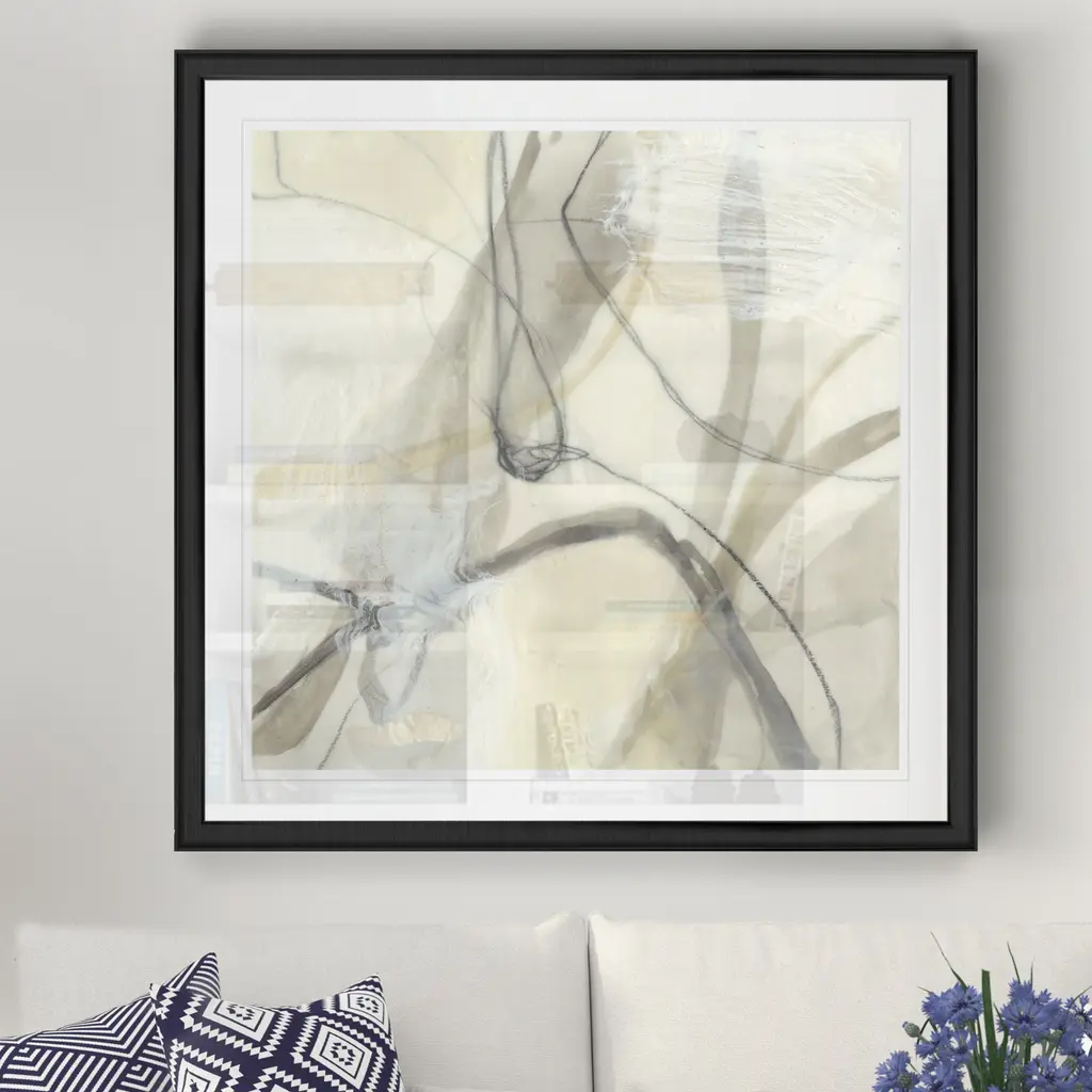Flowing Neutrals II -Black Framed Print A premium Black Framed giclee print Featuring a beveled a matt , acrylic glass, and a high quality giclee print 5 SIZES AVAILABLE 34''x34''- Overall Size 30''x30'' - Overall Size 26''x26''' - Overall Size 22''x22''' - Overall Size 18''x18''' - Overall Size Each piece is made to order. Built to Last Each piece comes ready to hang Fade and Water resistant Made domestically