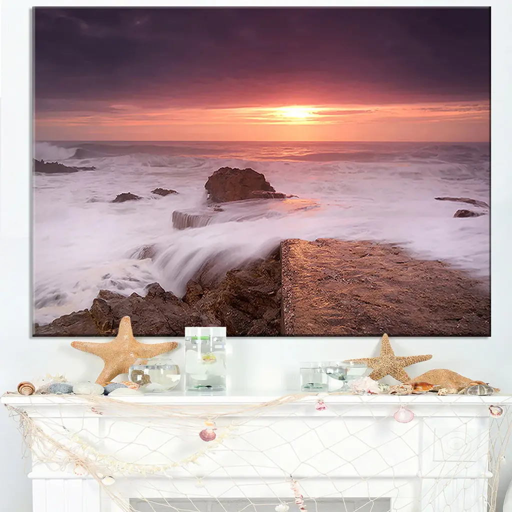 The Flowing Waves at Cable Shallow Coast canvas art print is sure to make an impression on anyone who sees it. This artwork is gallery wrapped around a 1-inch solid wood frame and arrives carefully packaged and entirely ready to hang on the wall. Design Art only uses the highest resolution and pigments to ensure a crisp colorful print that is never faded or pixelated. This artwork is sure to be a conversation starter in any home or office.