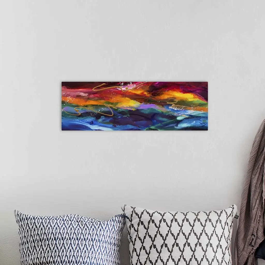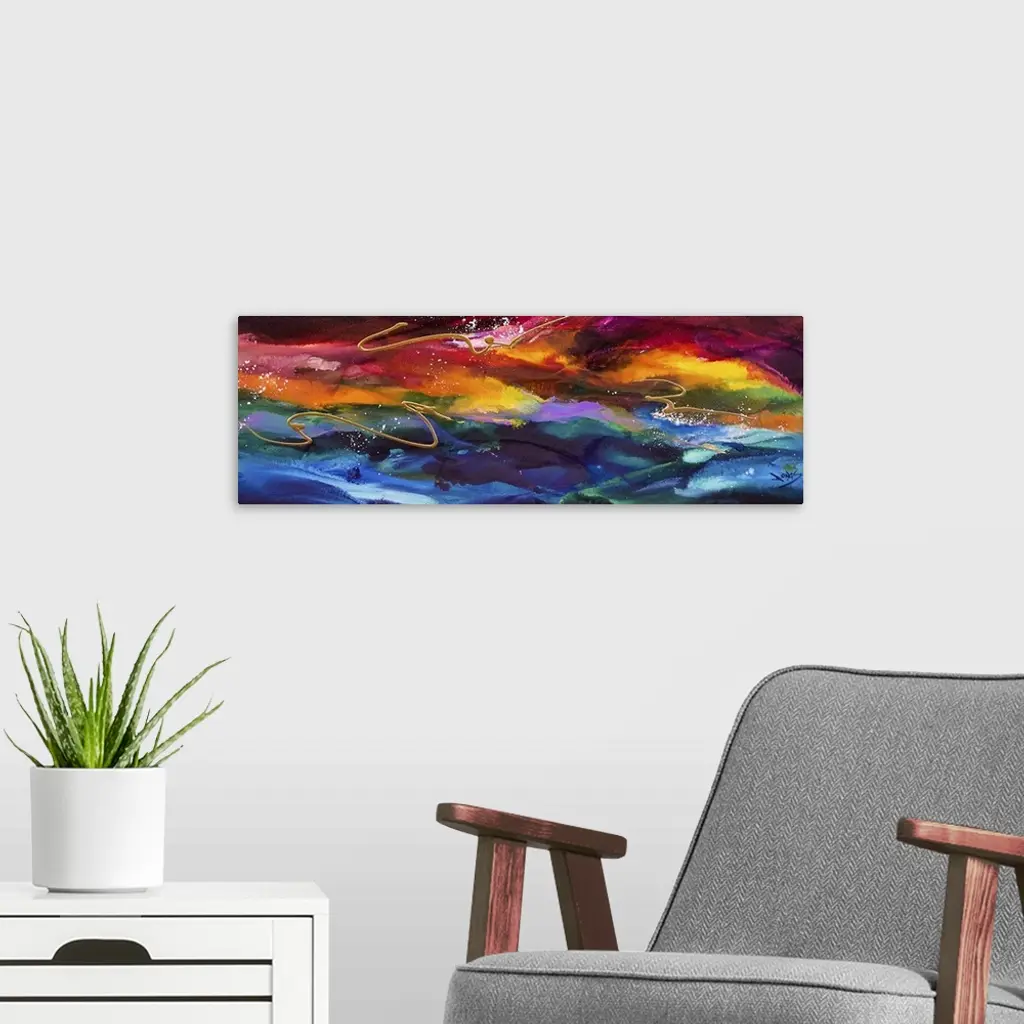 Contemporary abstract painting using a convergence of textures and tones spanning the gamut of color.