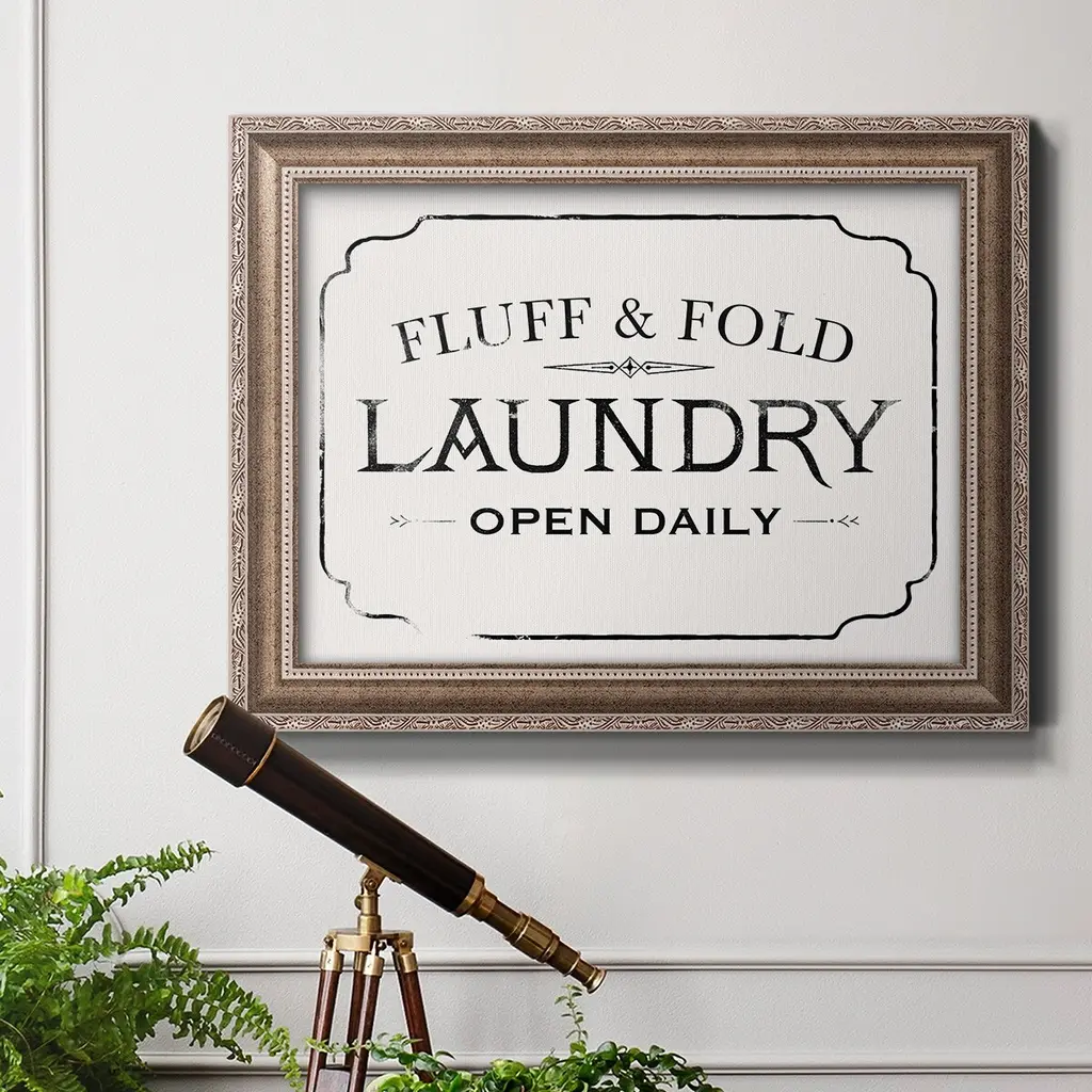 Fluff & Fold I Premium Framed Canvas- Ready to Hang A Premium Framed Canvas created to last. Framed in distressed wood and available in an array of sizes and colors Featuring a beveled a solid wood stretcher bar, each piece comes ready to hand 3 SIZES AVAILABLE 16''X20'' - Overall Size 18'X27'' - Overall Size 24''x36'' - Overall Size Each piece is made to order. Each piece comes with hanging hardware. Made in the USA Ready to Hang Giclee Paper Print Acrylic Glass Beveled Matt Board