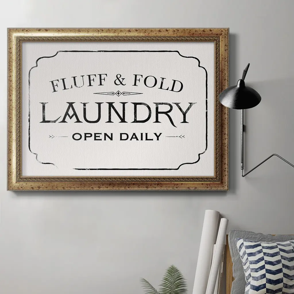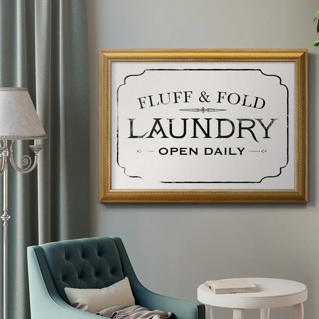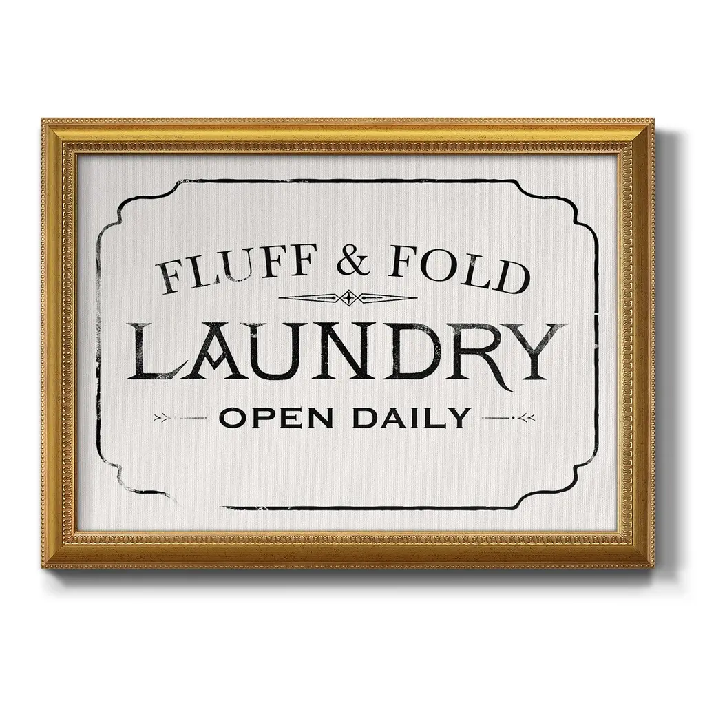 Fluff & Fold I Premium Framed Canvas- Ready to Hang A Premium Framed Canvas created to last. Framed in distressed wood and available in an array of sizes and colors Featuring a beveled a solid wood stretcher bar, each piece comes ready to hand 3 SIZES AVAILABLE 16''X20'' - Overall Size 18'X27'' - Overall Size 24''x36'' - Overall Size Each piece is made to order. Each piece comes with hanging hardware. Made in the USA Ready to Hang Giclee Paper Print Acrylic Glass Beveled Matt Board
