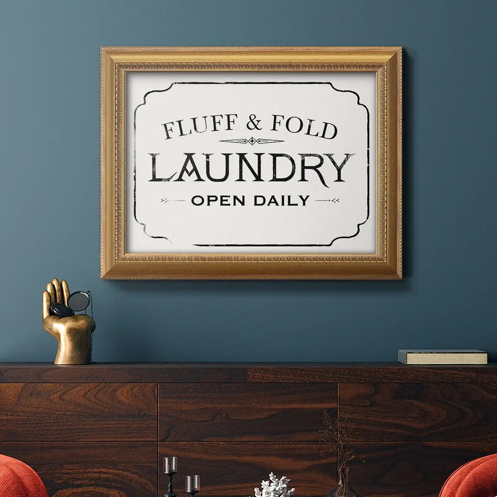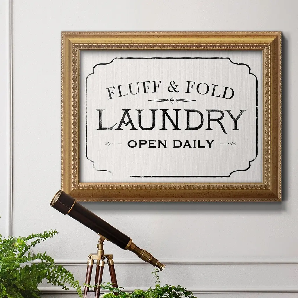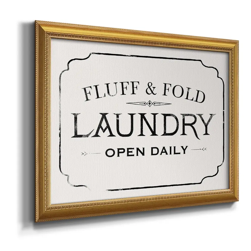 Fluff & Fold I Premium Framed Canvas- Ready to Hang A Premium Framed Canvas created to last. Framed in distressed wood and available in an array of sizes and colors Featuring a beveled a solid wood stretcher bar, each piece comes ready to hand 3 SIZES AVAILABLE 16''X20'' - Overall Size 18'X27'' - Overall Size 24''x36'' - Overall Size Each piece is made to order. Each piece comes with hanging hardware. Made in the USA Ready to Hang Giclee Paper Print Acrylic Glass Beveled Matt Board
