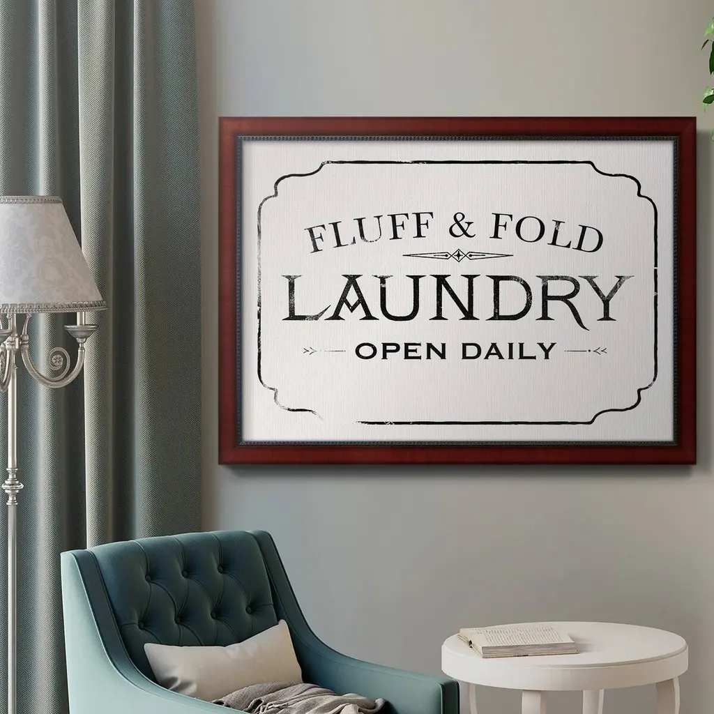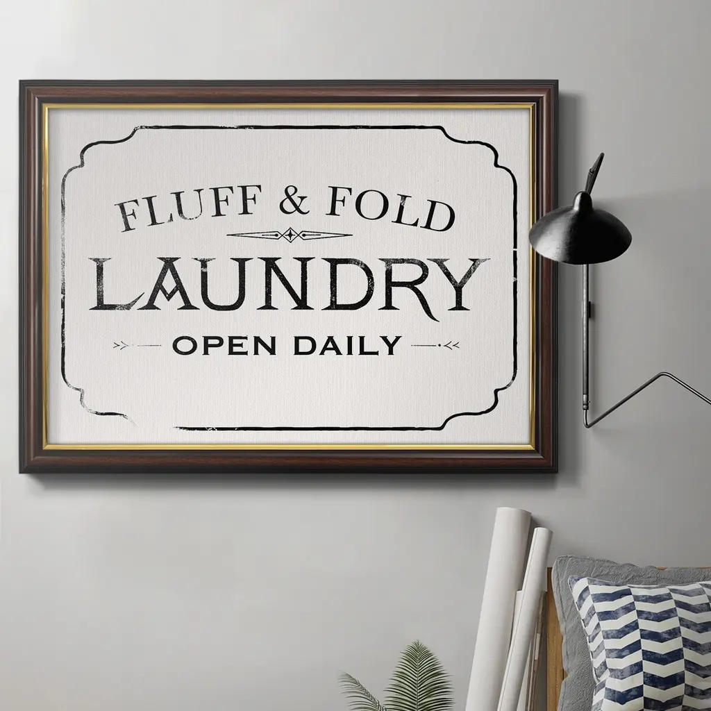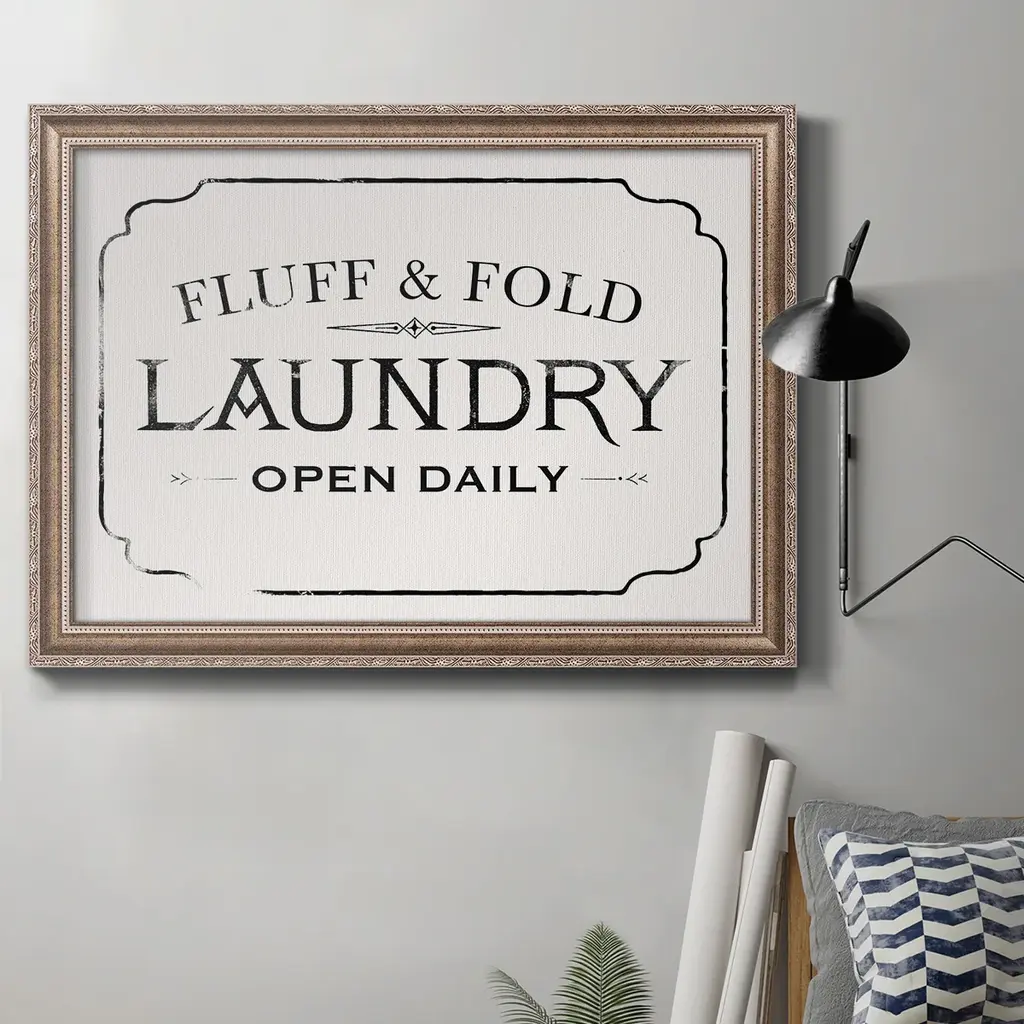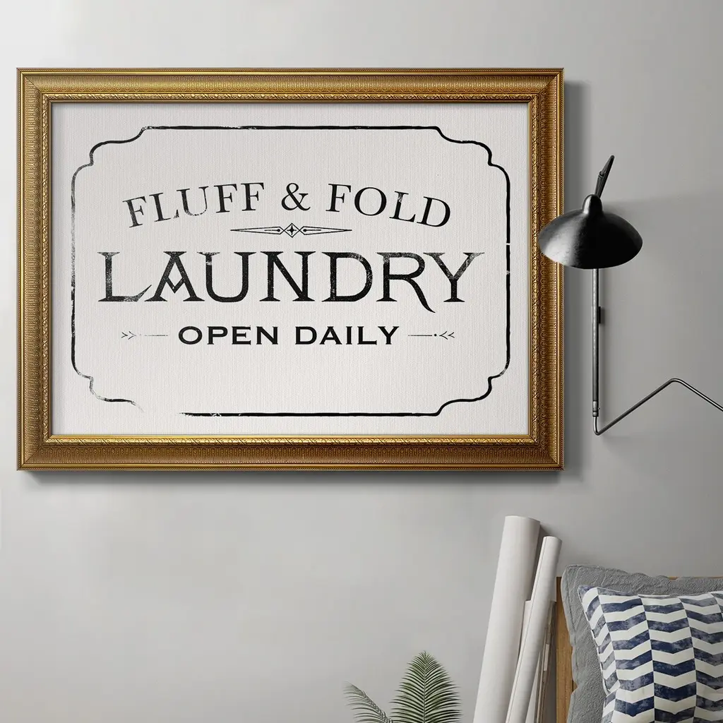 Fluff & Fold I Premium Framed Canvas- Ready to Hang A Premium Framed Canvas created to last. Framed in distressed wood and available in an array of sizes and colors Featuring a beveled a solid wood stretcher bar, each piece comes ready to hand 3 SIZES AVAILABLE 16''X20'' - Overall Size 18'X27'' - Overall Size 24''x36'' - Overall Size Each piece is made to order. Each piece comes with hanging hardware. Made in the USA Ready to Hang Giclee Paper Print Acrylic Glass Beveled Matt Board