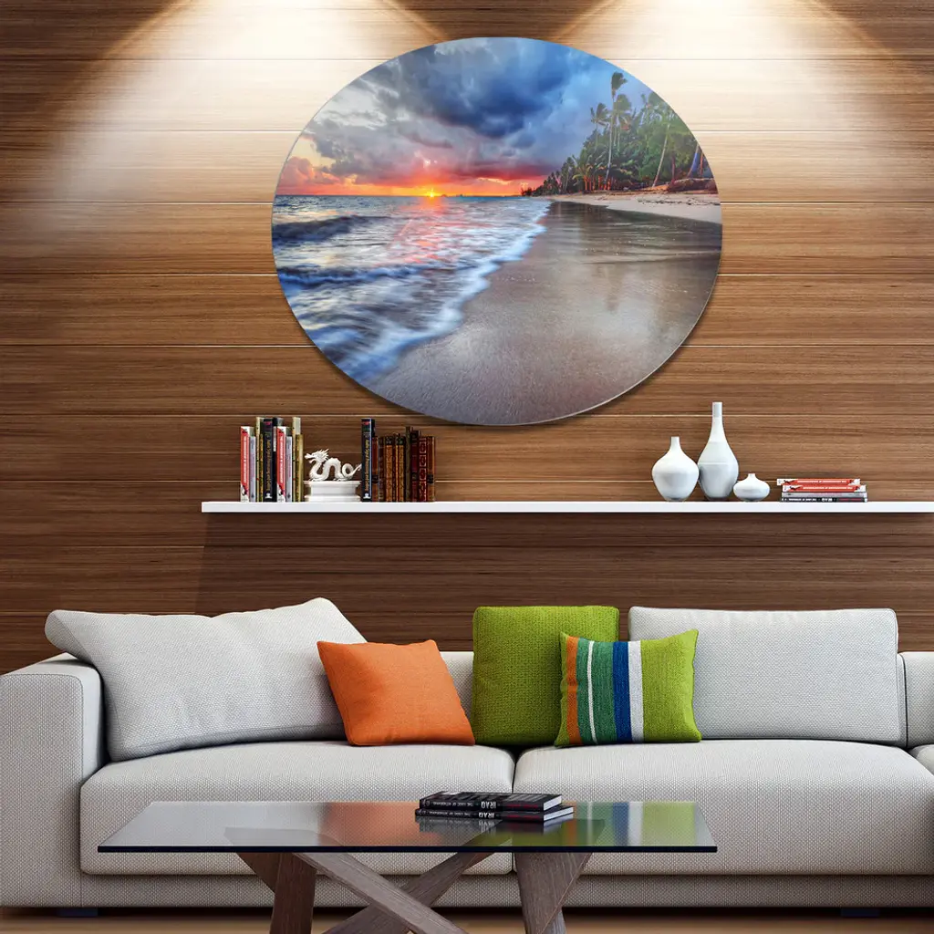 Fluffy Dark Clouds Over Ocean, Seashore Art Disc Metal Wall Art, 36"