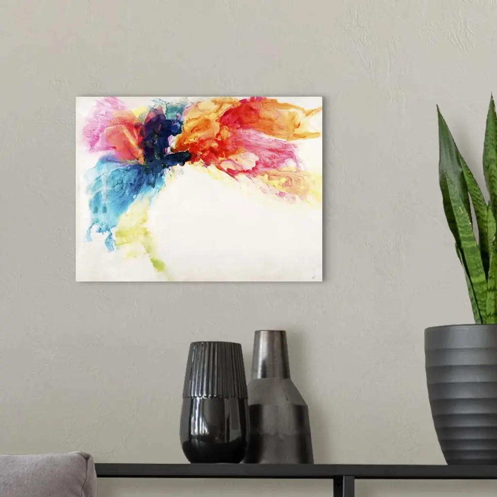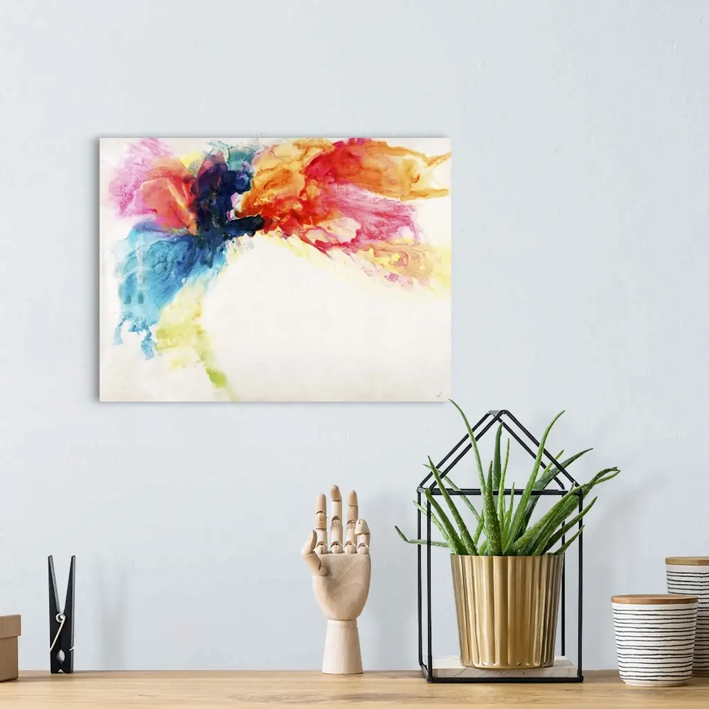 Contemporary abstract painting using a variety of colors to create a colorful cloud-like shape.