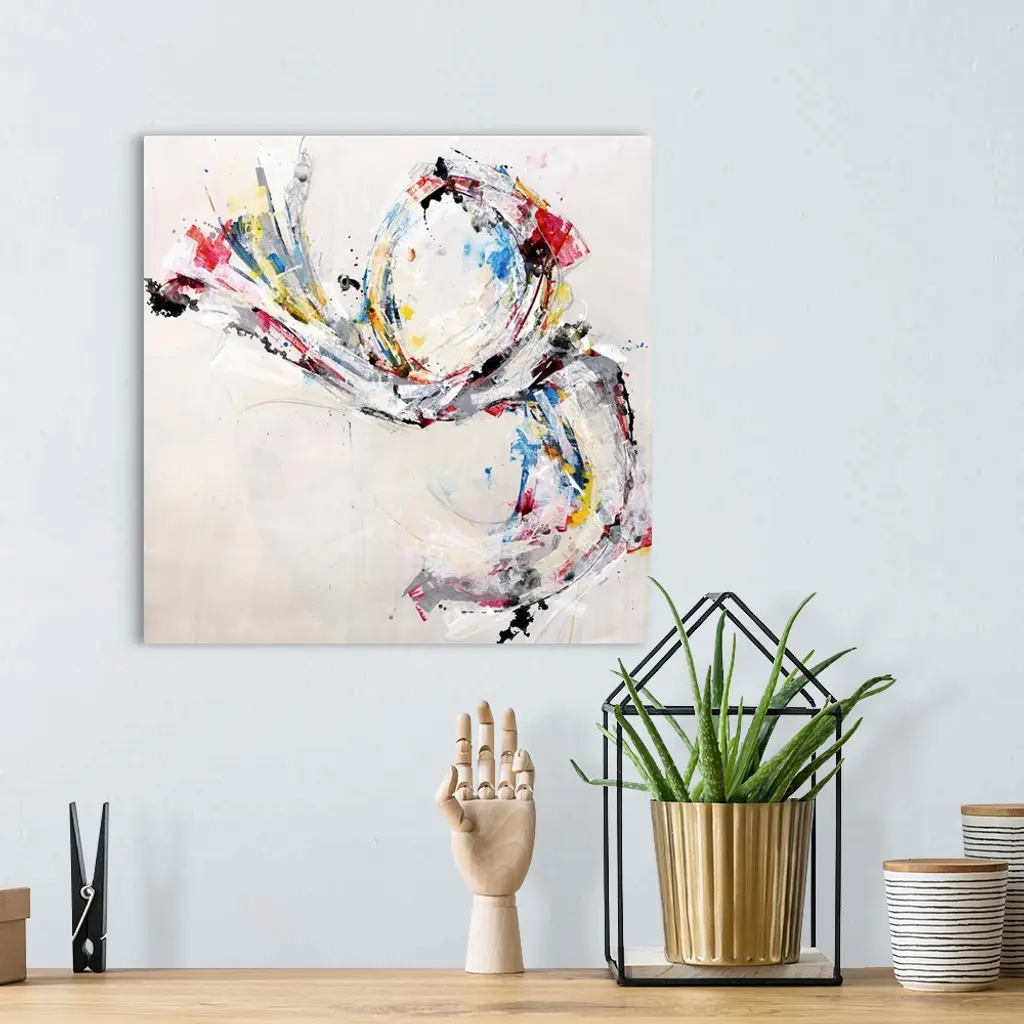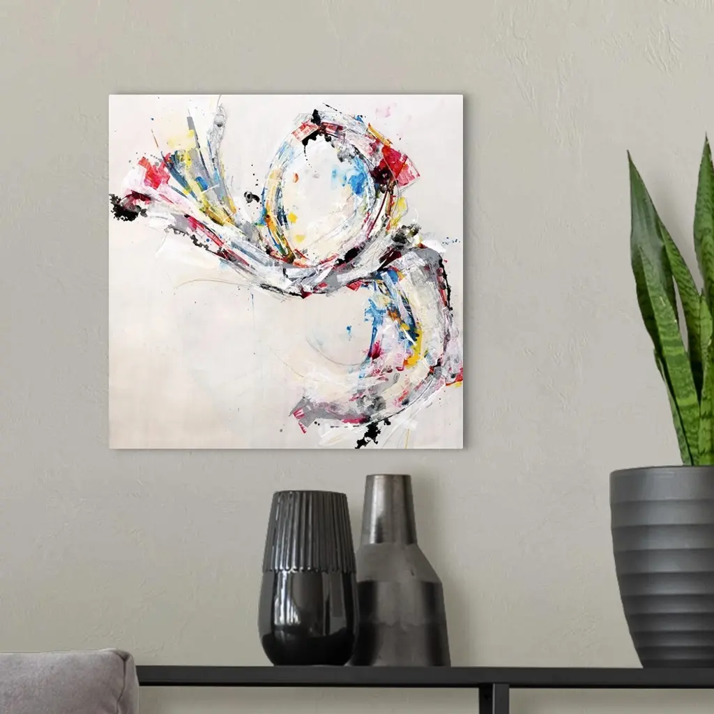 A contemporary abstract painting using a spectrum of colors in an explosive arrangement.