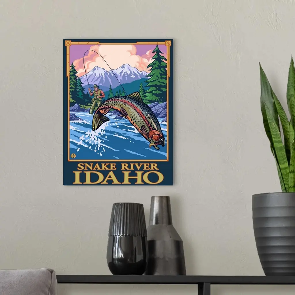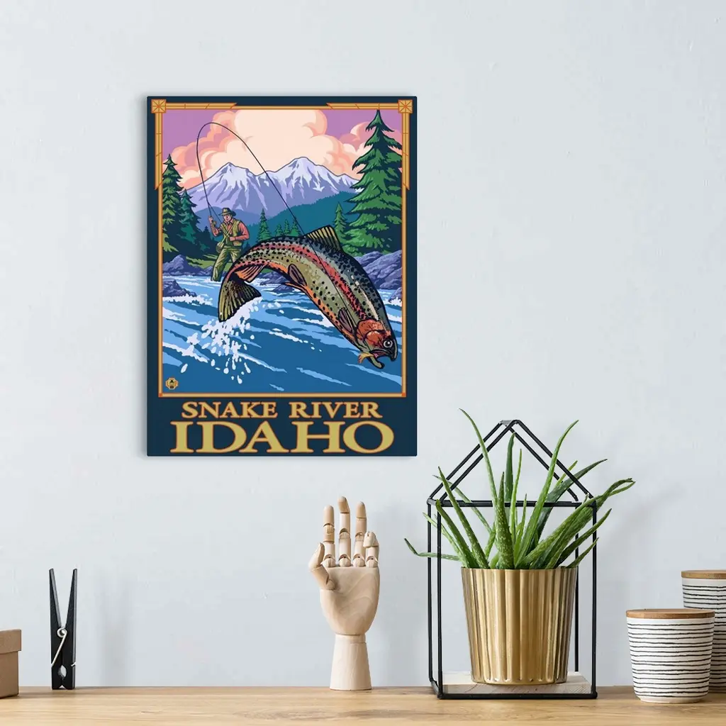 Fly Fishing Scene - Snake River, Idaho: Retro Travel Poster wall art for home and office decor. Discover canvas art prints, photos, mural, big canvas art and framed wall art in GreatBigCanvas.com's varied collections.