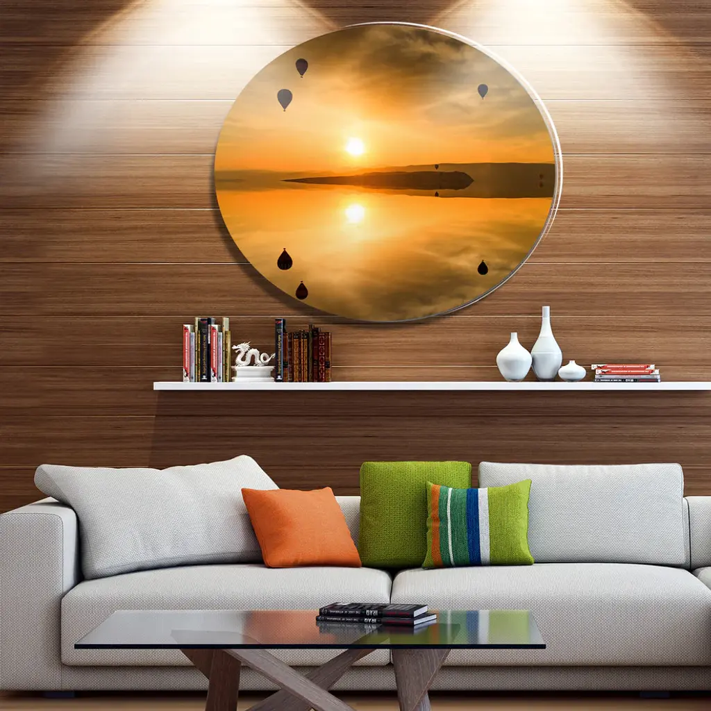 Flying Balloons And Reflection, Seashore Disc Metal Artwork, 38"