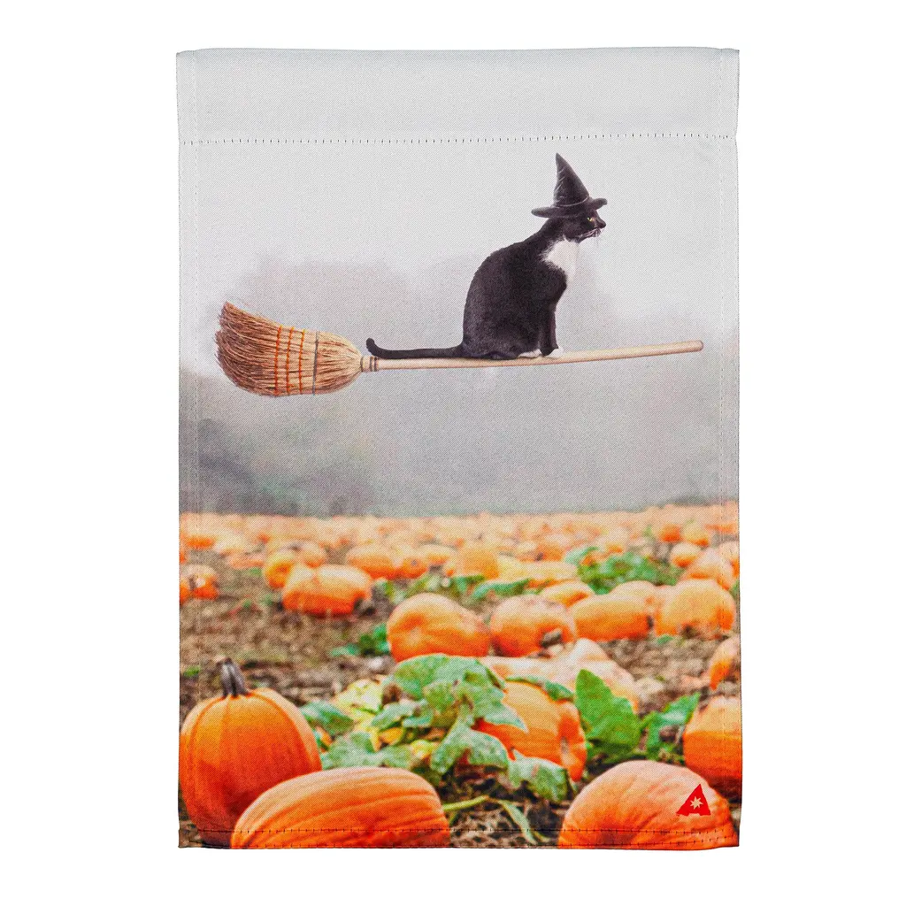 This flag is just what you need to get into the Halloween spirit. Featuring a little Halloween kitty on a flying broom, display this flag in your garden or by your porch or patio for a charming look. The eye-caching artwork has been carefully heat transferred onto sun-blocking material, resulting in a beautiful, high-quality finished product. The flag is made of weatherproof polyester suede that is soft yet durable. Our attention to detail and level of craftsmanship ensure that the flag won’t fade or fray, even with continued outdoor use. Flag features a sleeve at top for use with any standard flag pole or stand, sold separately.