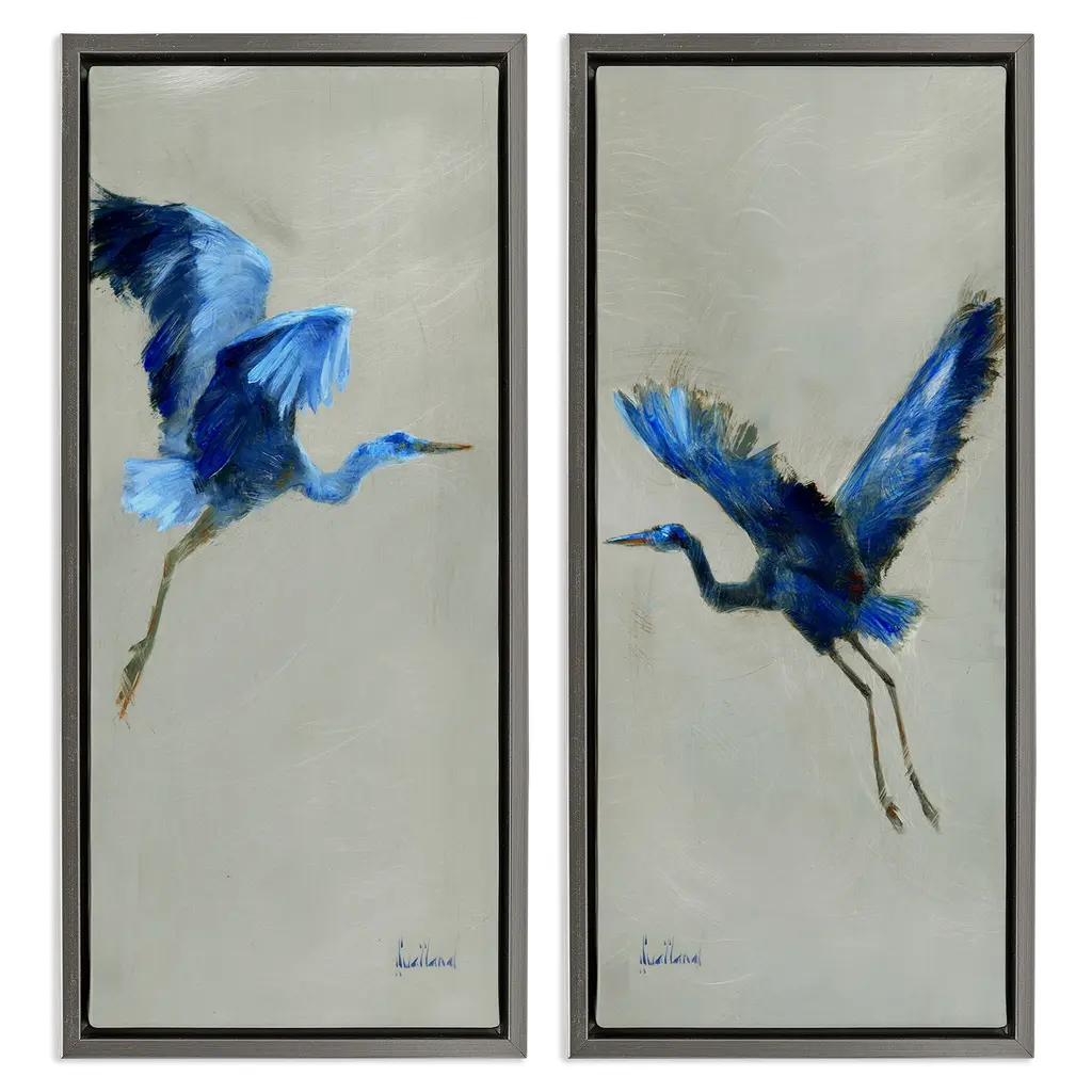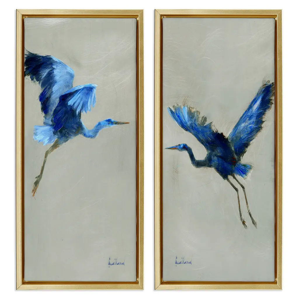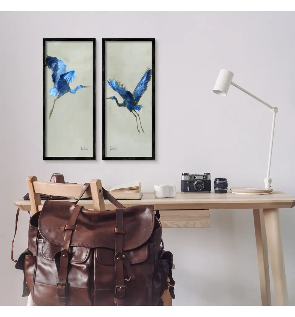 Flying Cranes Abstract Birds Expressive Blue Animal Flight,10 X 24