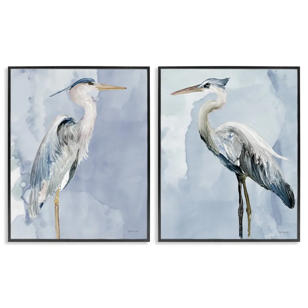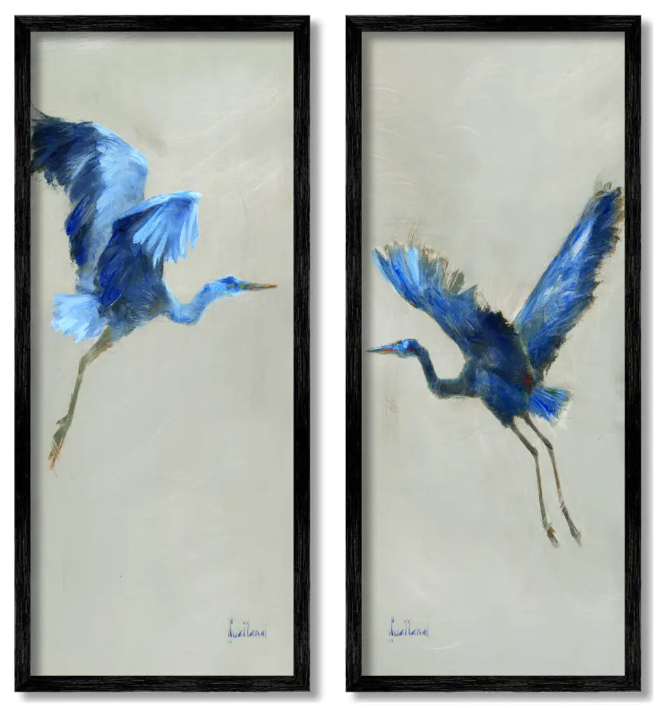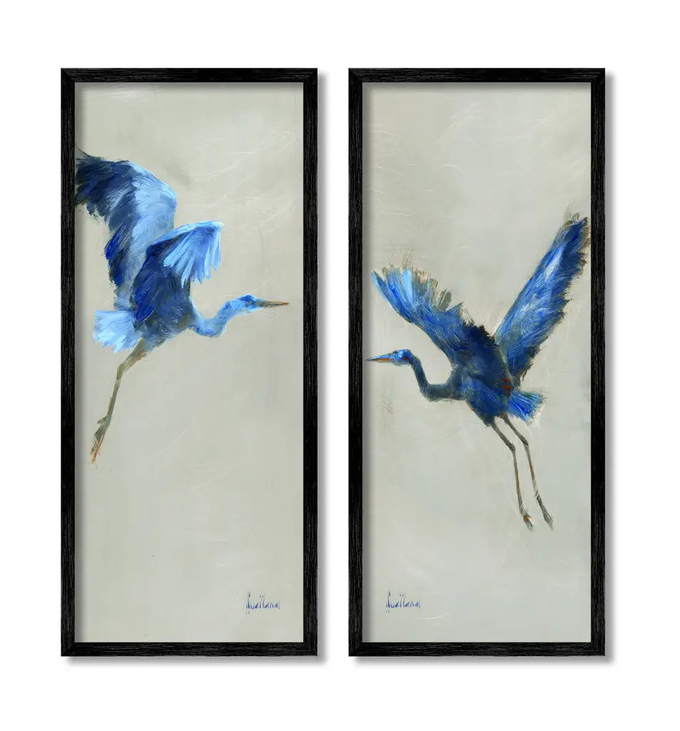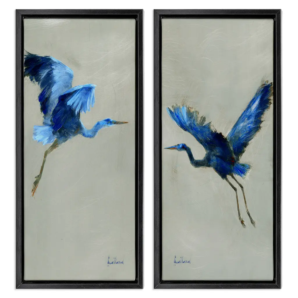 Flying Cranes Abstract Birds Expressive Blue Animal Flight,10 X 24