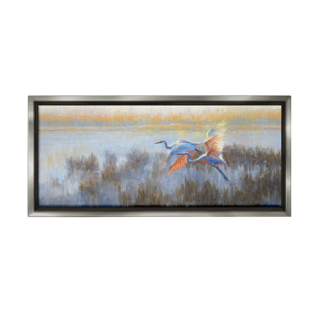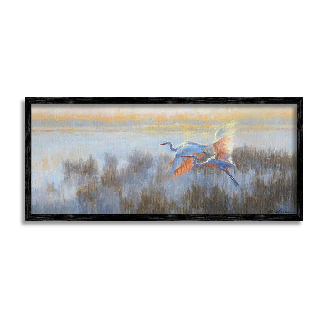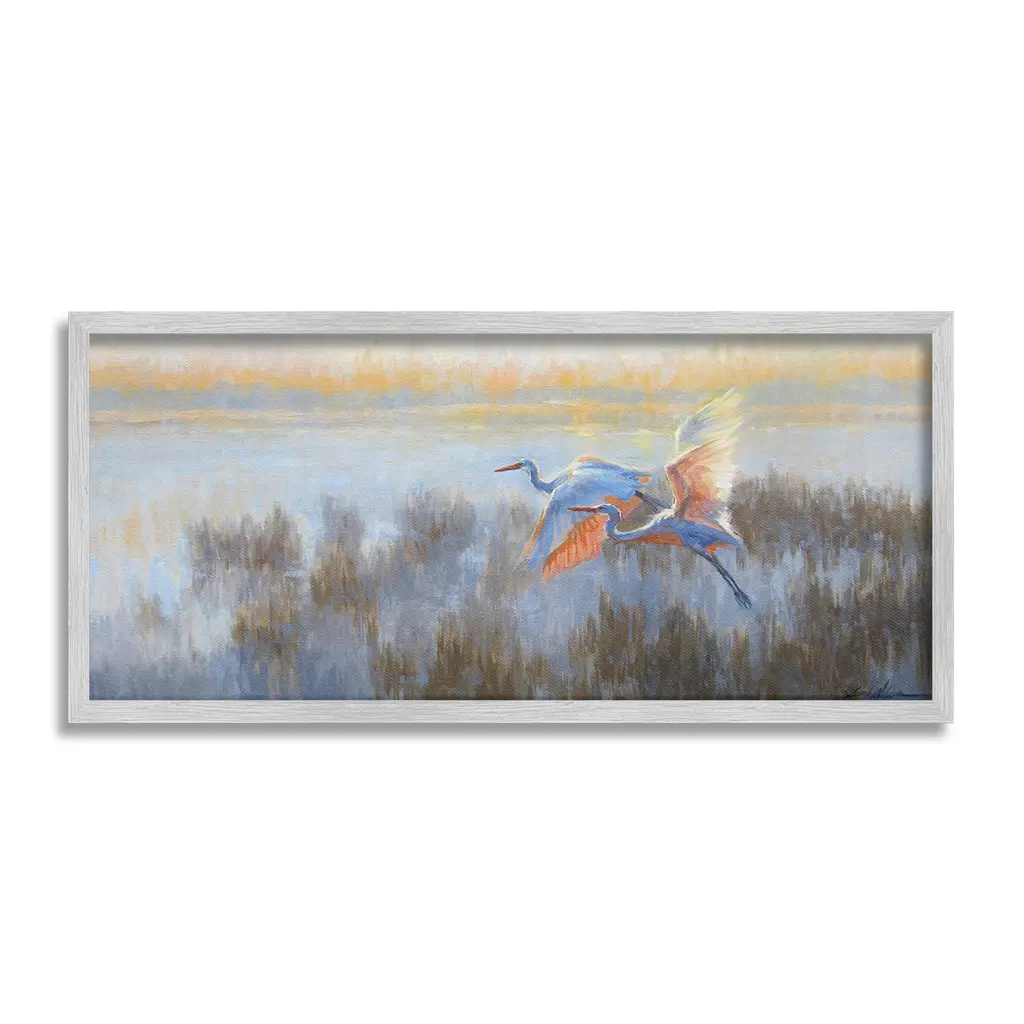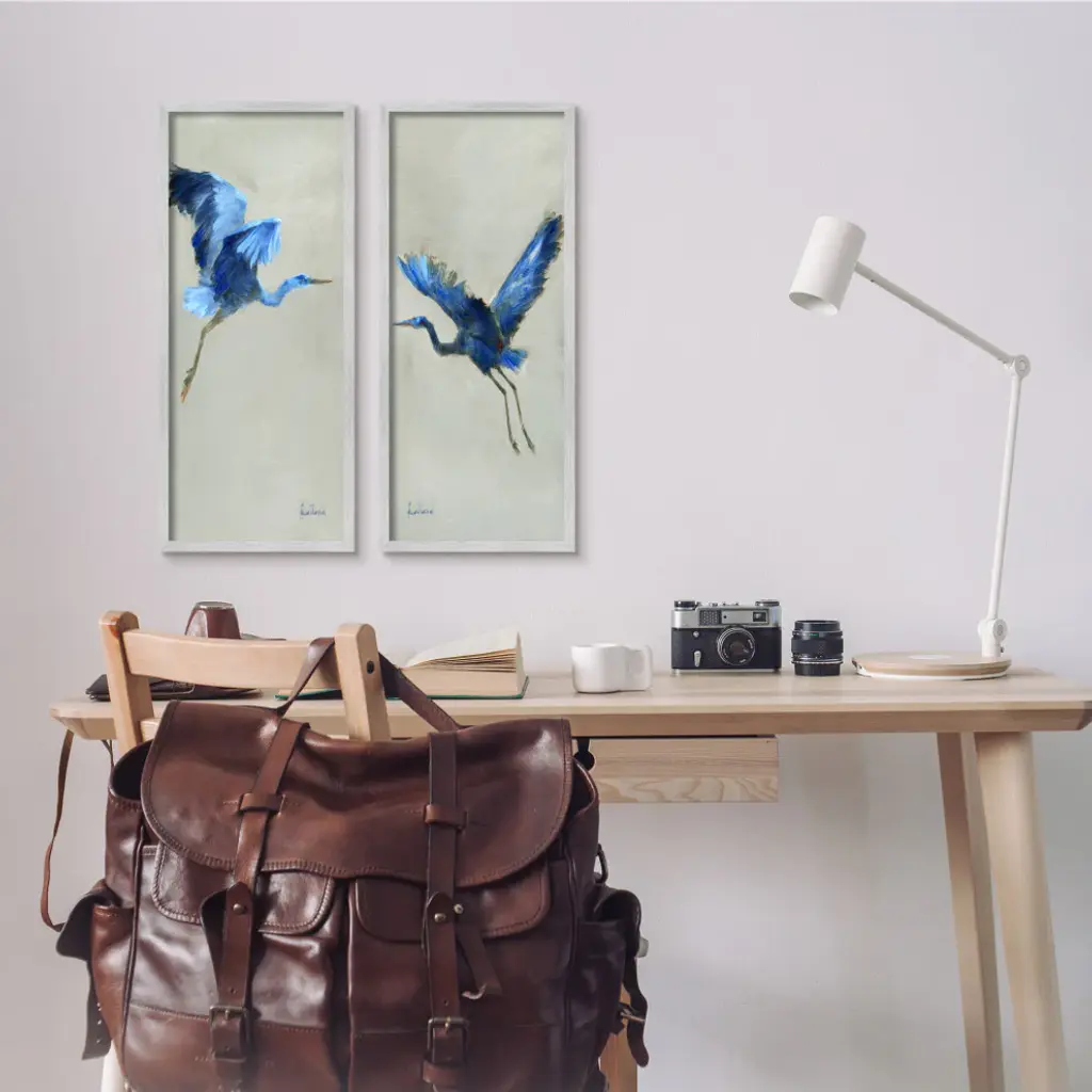 Flying Cranes Abstract Birds Expressive Blue Animal Flight,10 X 24