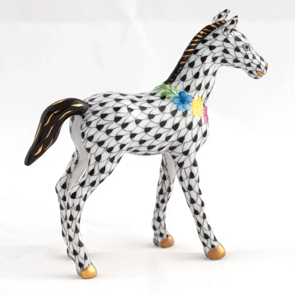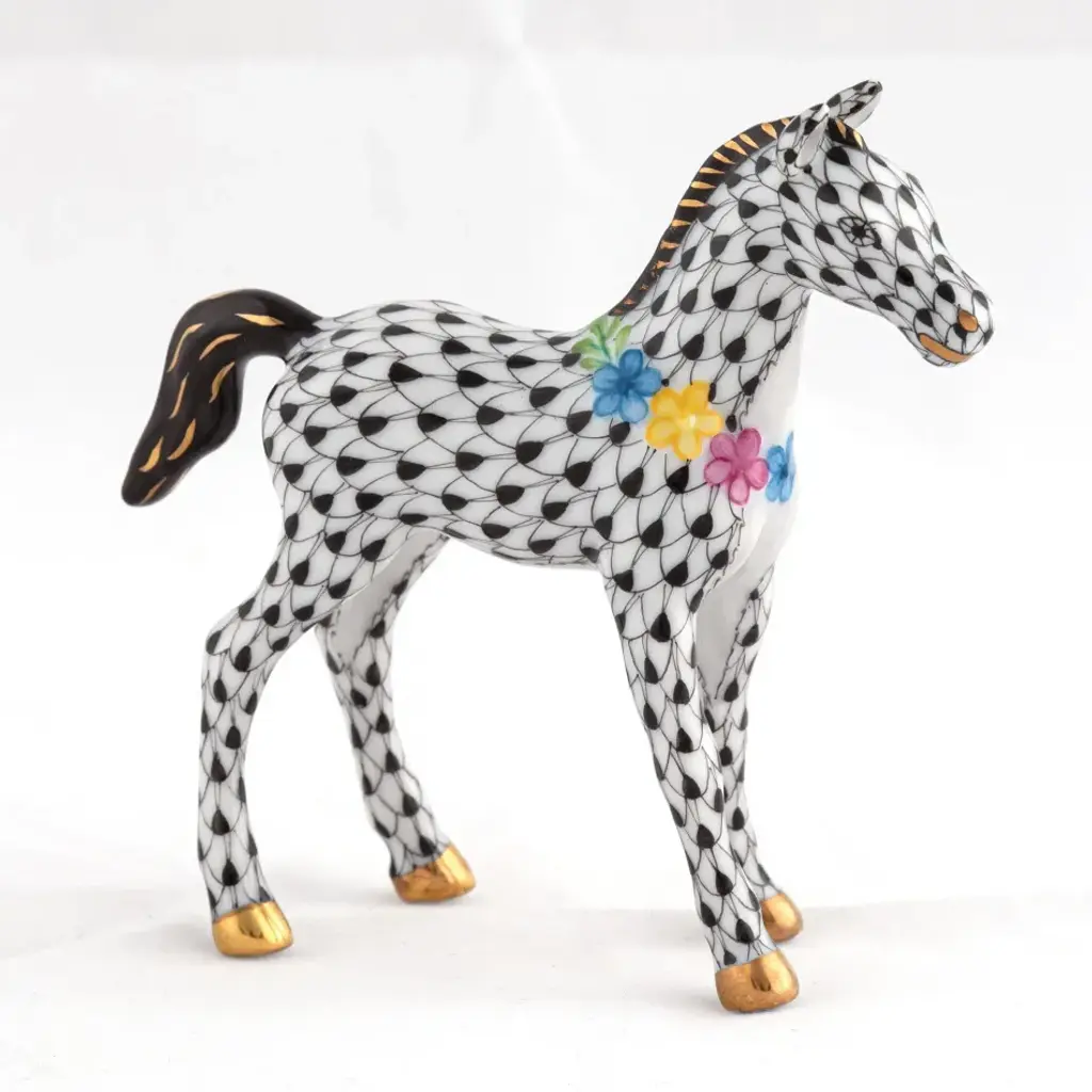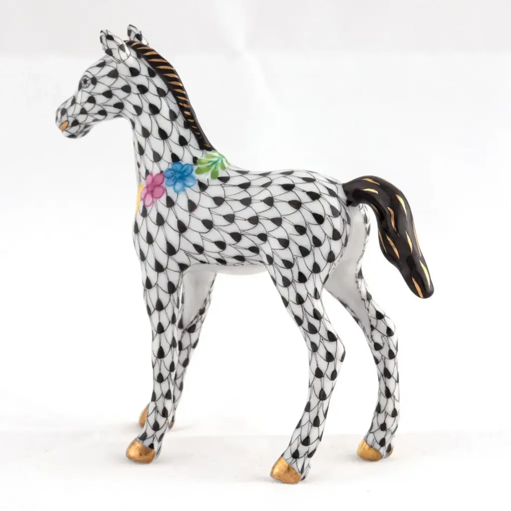 Foal With Flowers Black 3.5 In L X 1.25 In W X 3.5 In H