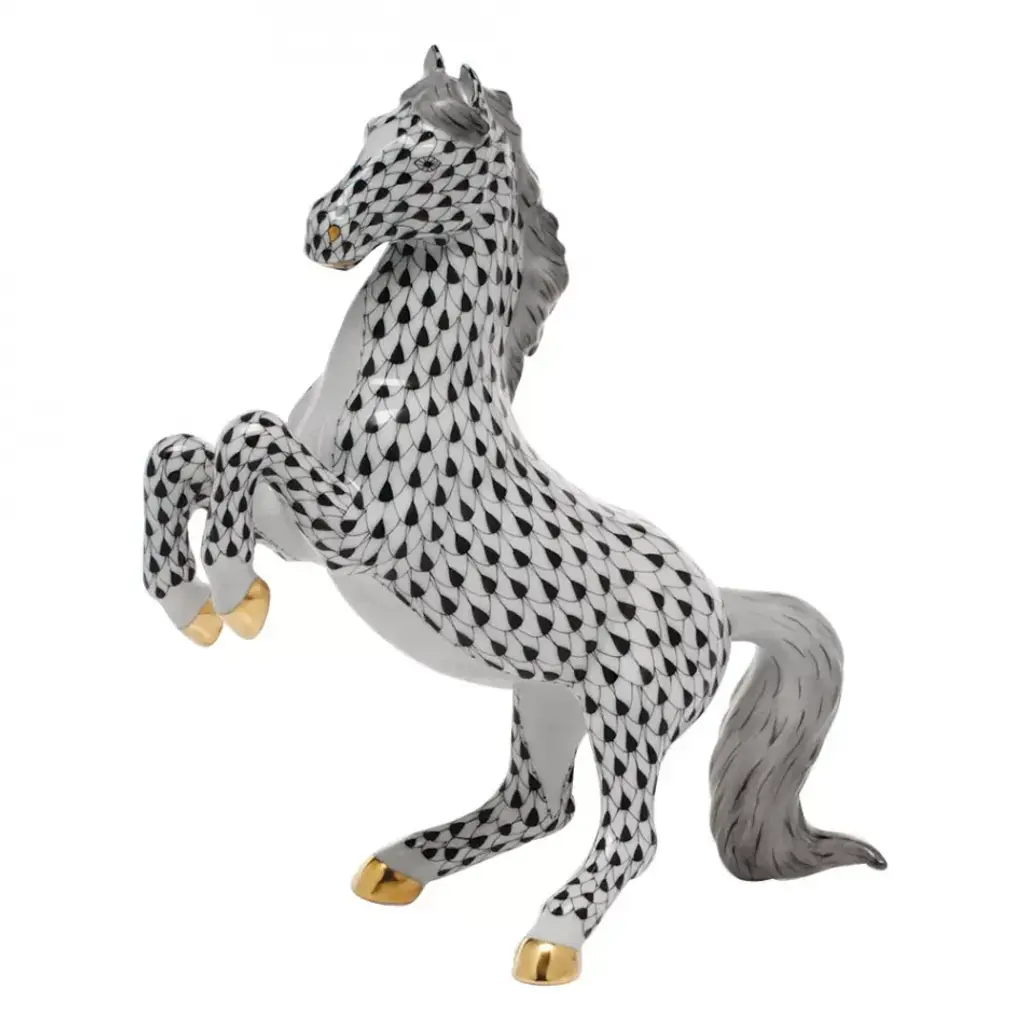 Endearing animals meek and bold, large and small, demure and majestic eagerly await the chance to melt your heart and warm your home. Each is brought to life by the skilled hands of artisans crafting and painting these charming porcelain creatures. The famous fishnet décor adorning many of the animals took form in 1858 when a Herend painter became inspired by a fishscale design he saw on a Chinese porcelain plate and painted a similar pattern onto a rooster figurine to imitate feathers. The rest is history, with the fishnet design now a Herend signature prized worldwide. Now the biggest porcelain manufactory in Europe, Herend was founded in 1826 to produce earthenware in the small Hungarian village for which it was named. At the time, Hungary was flooded with low-cost pottery, but in 1839, Mor Fischer became the Manufactory’s new owner and he decided to focus on producing dinnerware replacement pieces for Europe’s royal families to complement their valuable porcelain patterns from Germany and the Far East. As his client base grew, Fischer commissioned his artists to begin designing dinnerware patterns of their own. Queen Victoria’s 1851 purchase of a large set for Windsor Castle was a milestone, setting the stage for aristocrats throughout Europe to clamor for Herend in their estates. In the 1850s, Herend added meticulously-crafted figurines to its creations. Herend’s trademark fishnet pattern, which is widely recognized and prized as Herend’s signature design, started in 1858 when an artist who was intrigued with a Chinese plate’s fish scale design painted it onto a rooster figurine to imitate feathers.