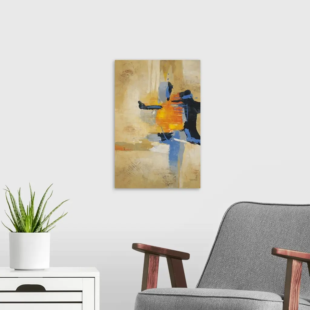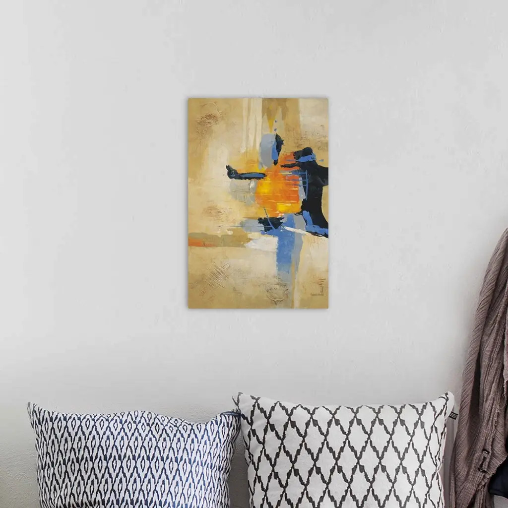 Contemporary abstract artwork using warm and cool tones in a geometric rhythm.
