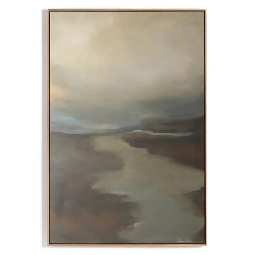 Inspired by nature and the beauty of ordinary life, Dallas-based artist Lauren Fuhr captures fog rolling over the hills on matte canvas. Complemented by a vertical grain white oak floater frame. Size shown is print size, add frame thickness to print size for total frame size Weight: 25 lbs Shipping box: 37" W x 4" D x 53" H, 30 lbs.