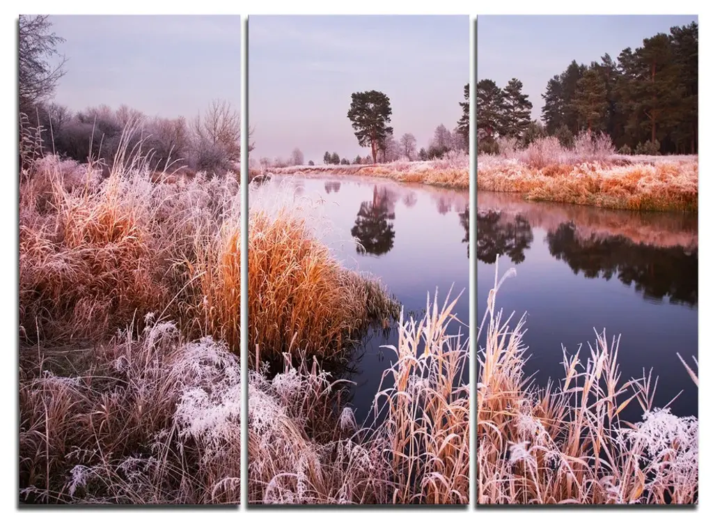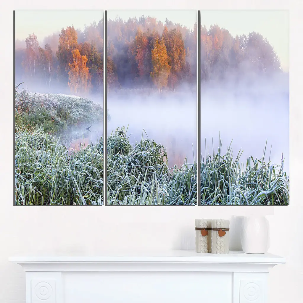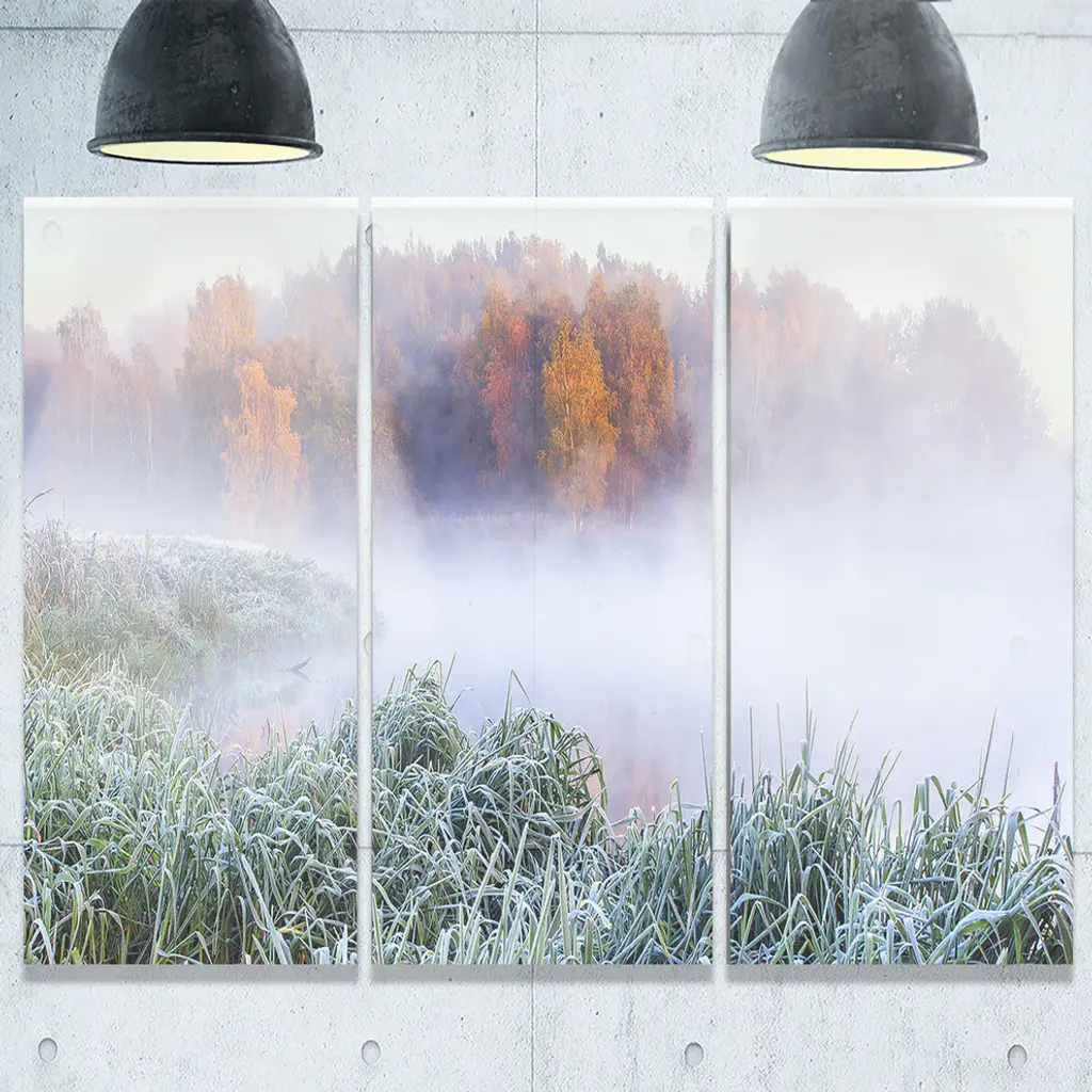 "Foggy Autumn Dawn Panorama" Metal Wall Art, 3 Panels, 36"x28"
