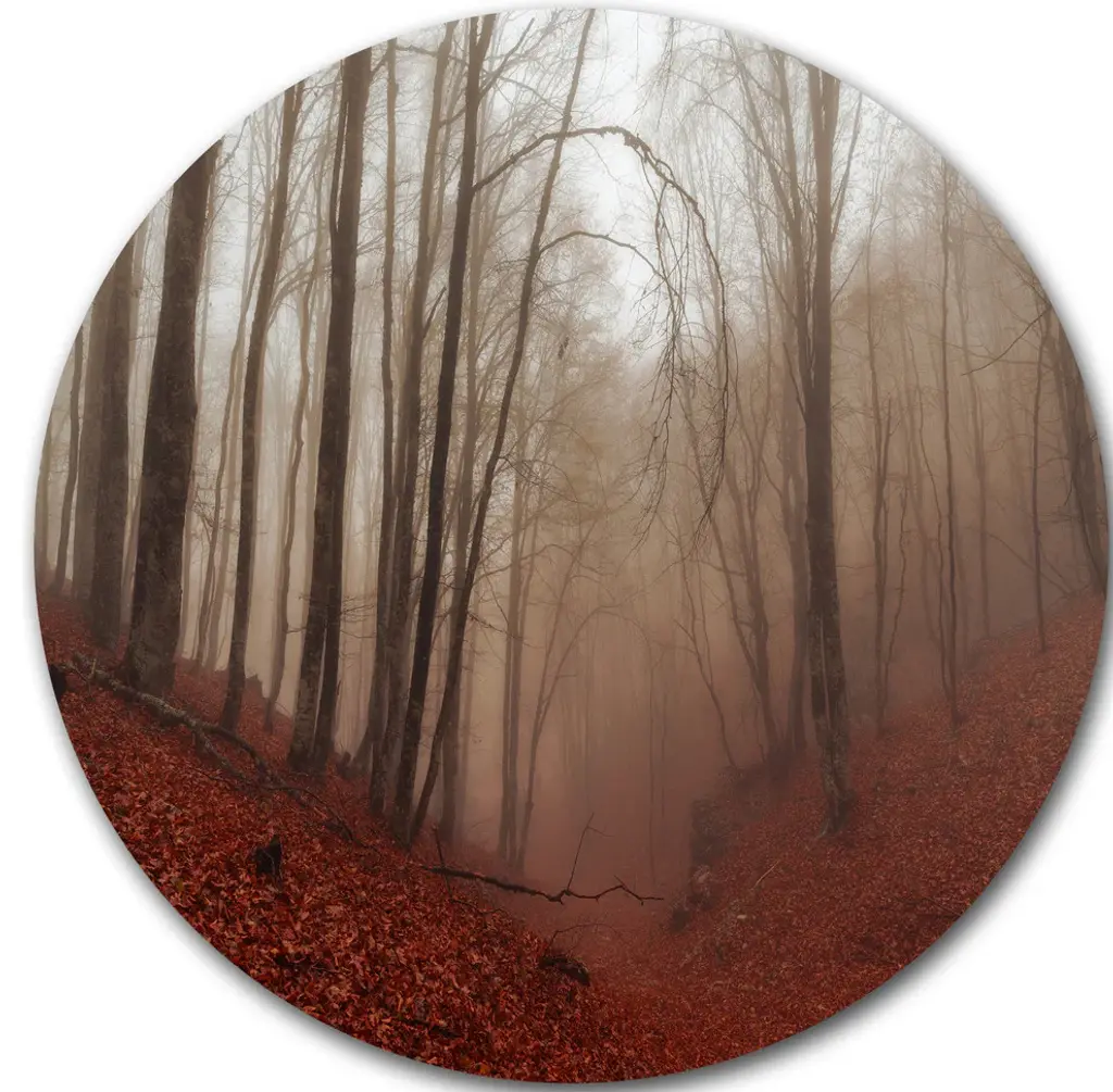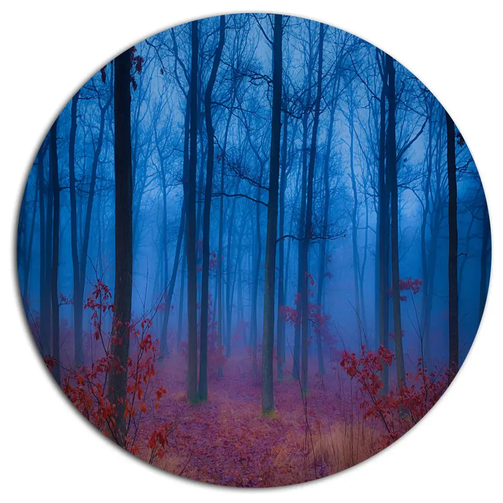 Bring Contemporary Abstraction to your home with this large Circle Metal wall art. This Foggy Forest in Blue and Pink Photo Metal Artwork makes it the focal point of any room or office. - White Gloss Coating ensures colors are extra vibrant with light reflection.- Aluminum grade Sheet Metal with 1 inch mounting frame on the back giving the illusion that the artwork is floating on the wall..- Mounting Brackets are included along with instructions.- High Quality Digital images are created directly into a glossy aluminum panel producing a stunning and captivating print into the glossy finish of the metal.- Water, Fire and Scratch resistant HD Aluminum panels.- Looks better than any photo paper and guaranteed to last at least 20 years- Easy to clean with a microfiber cloth. Colors are far superior to regular Canvas Art. - Easy to Hang