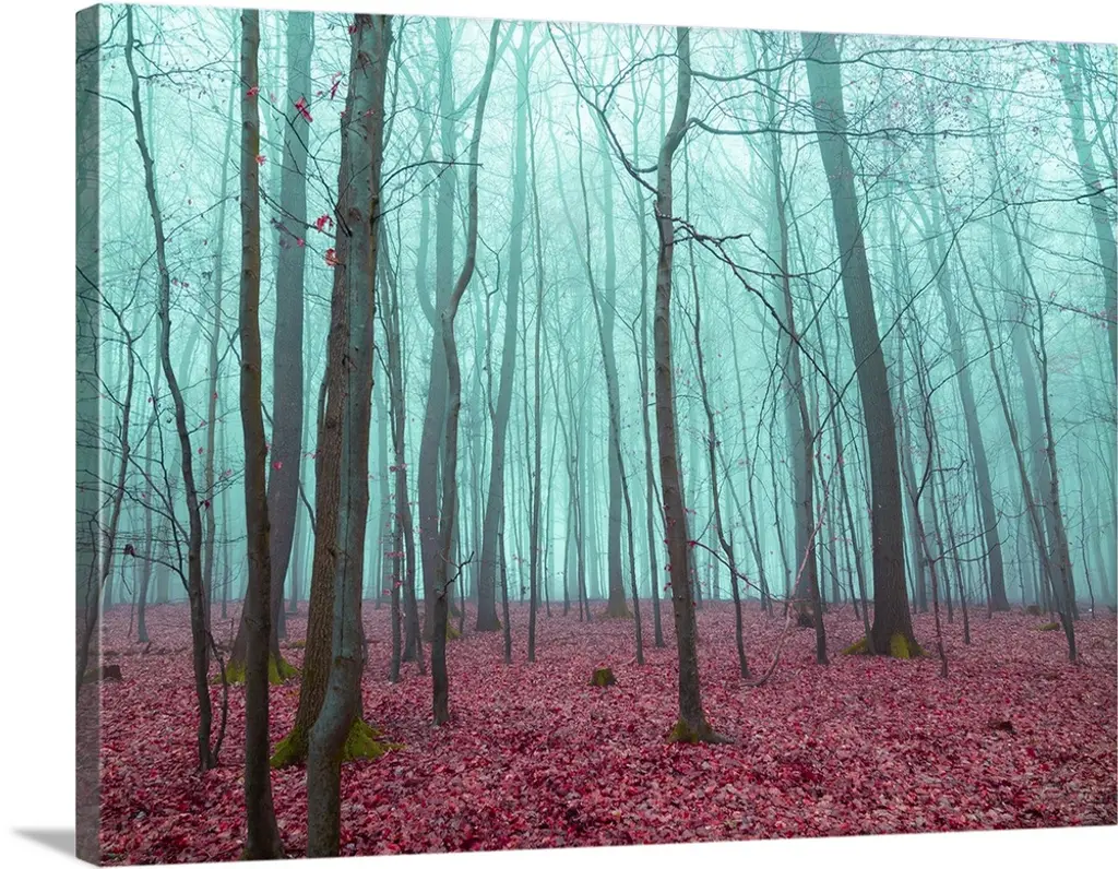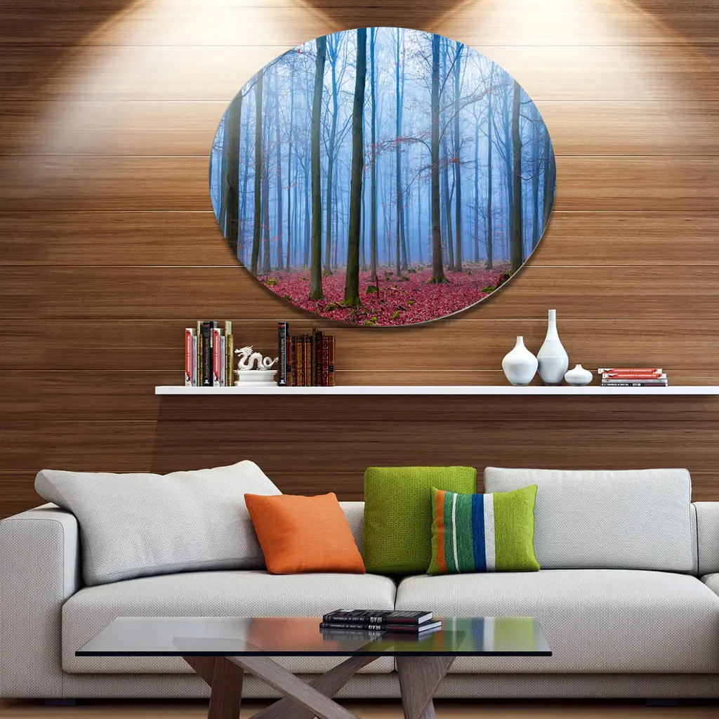Foggy Forest In Blue And Pink Photo, Modern Forest Round Wall Art, 23"