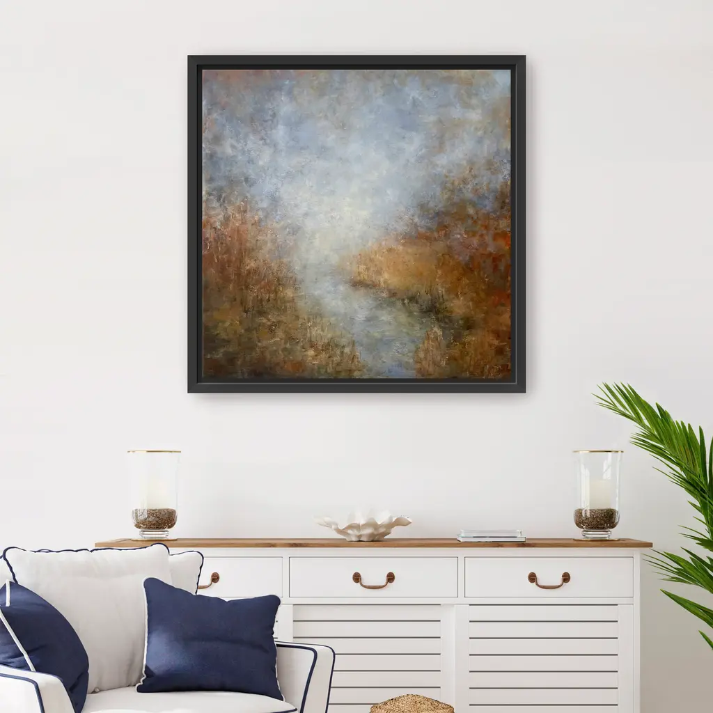 Foggy Lake Canvas Giclee Wall Art - Framed / Oak / 30x30