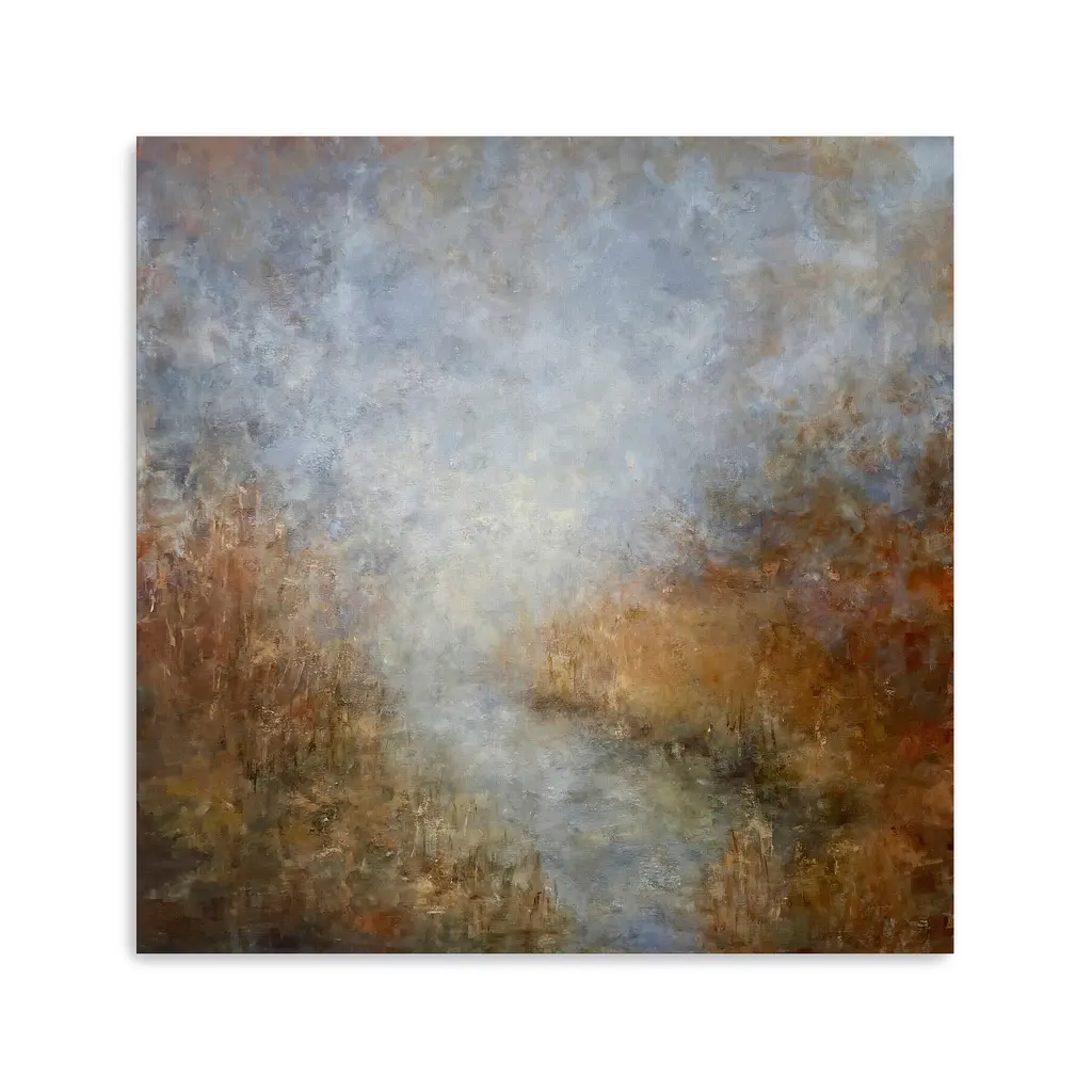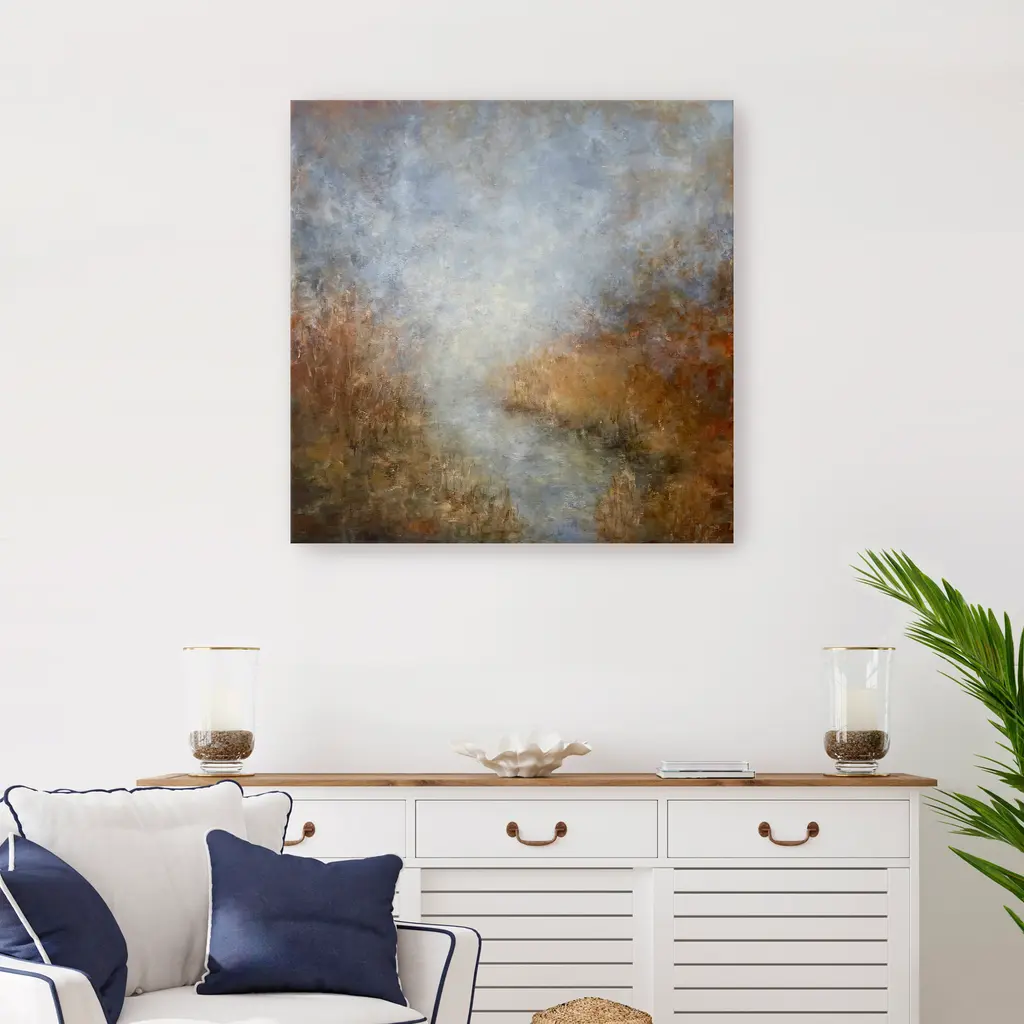 Foggy Lake Canvas Giclee Wall Art - Framed / Oak / 40x40