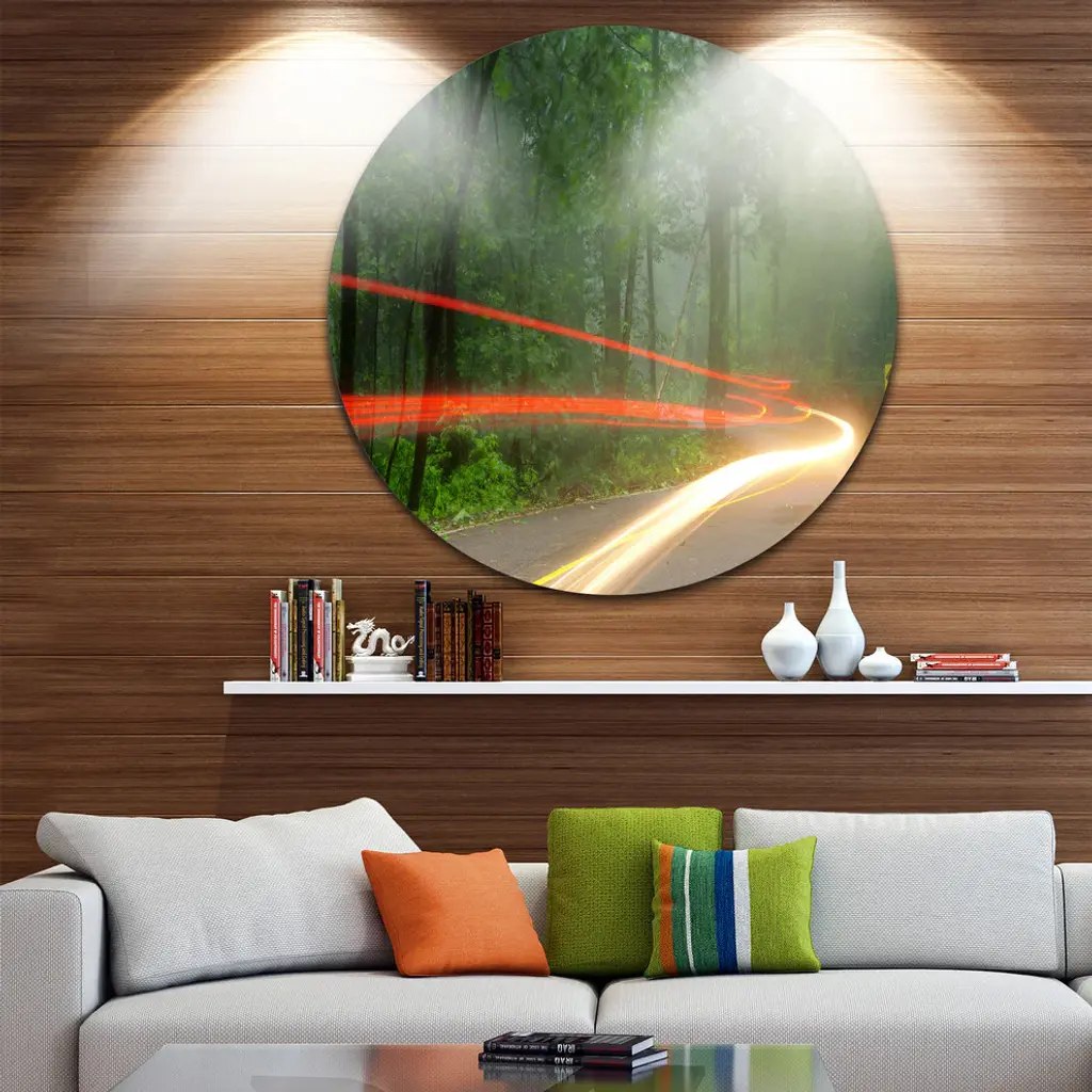 Bring Contemporary Abstraction to your home with this large Circle Metal wall art. This Foggy Morning with Sun Rays Metal Artwork makes it the focal point of any room or office. - White Gloss Coating ensures colors are extra vibrant with light reflection.- Aluminum grade Sheet Metal with 1 inch mounting frame on the back giving the illusion that the artwork is floating on the wall..- Mounting Brackets are included along with instructions.- High Quality Digital images are created directly into a glossy aluminum panel producing a stunning and captivating print into the glossy finish of the metal.- Water, Fire and Scratch resistant HD Aluminum panels.- Looks better than any photo paper and guaranteed to last at least 20 years- Easy to clean with a microfiber cloth. Colors are far superior to regular Canvas Art. - Easy to Hang