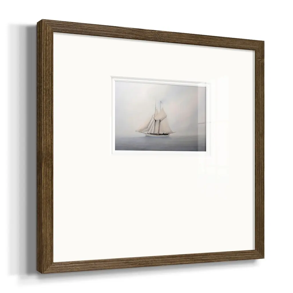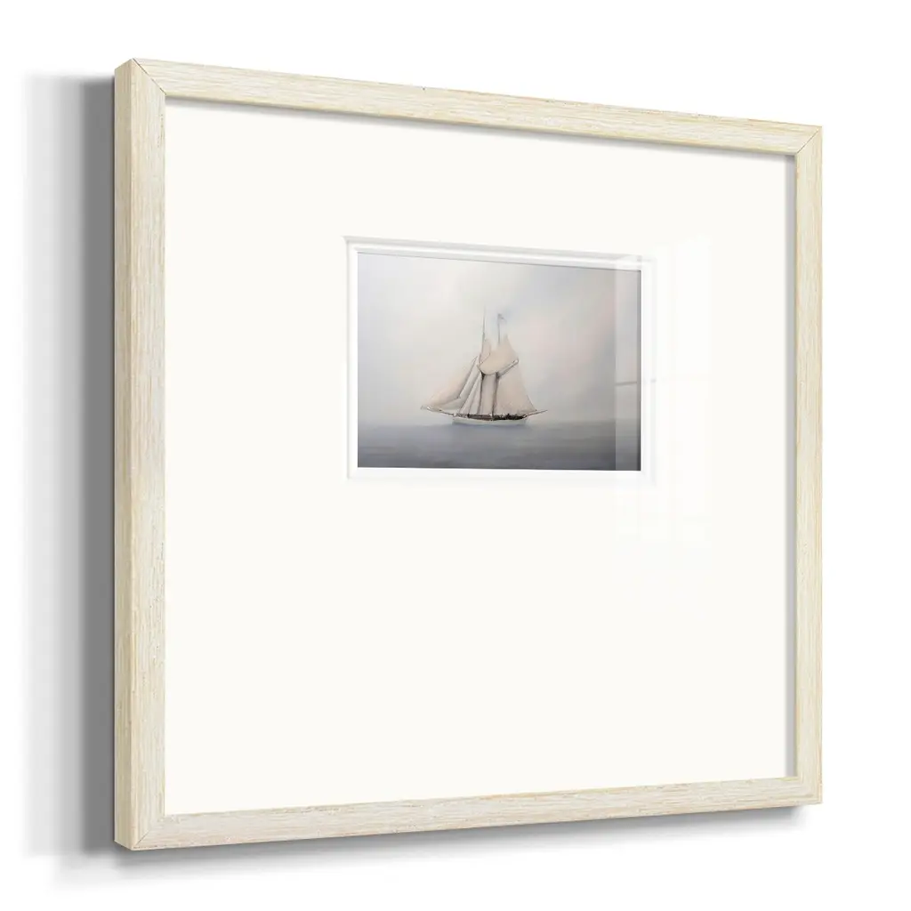 Foggy Sail IIIPremium Framed Print A framed cold pressed paper print featuring superior double matting and quality frame. 2 SIZES AVAILABLE 16''X16''' - Overall Size 20''X20''' - Overall Size Each piece is made to order. Each piece comes with hanging hardware. Made in the USA Ready to Hang Giclee Paper Print Plexiglass Beveled Matt Board Double Matte Board