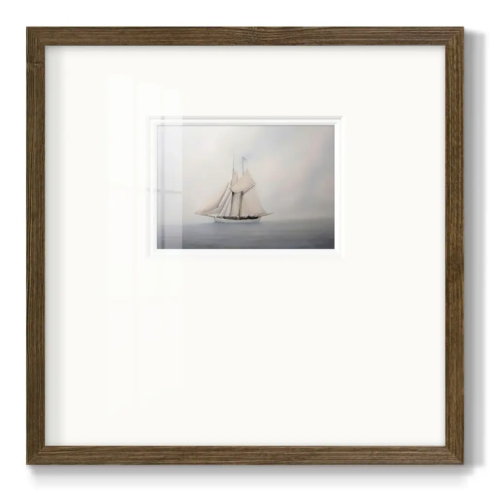Foggy Sail IIIPremium Framed Print A framed cold pressed paper print featuring superior double matting and quality frame. 2 SIZES AVAILABLE 16''X16''' - Overall Size 20''X20''' - Overall Size Each piece is made to order. Each piece comes with hanging hardware. Made in the USA Ready to Hang Giclee Paper Print Plexiglass Beveled Matt Board Double Matte Board