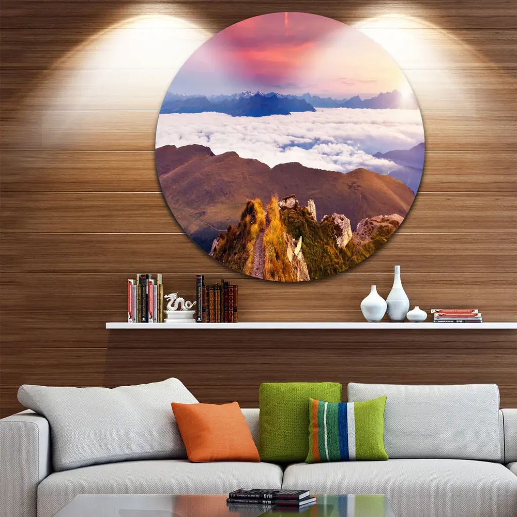 Bring Contemporary Abstraction to your home with this large Circle Metal wall art. This Foggy Val Gardena Valley Panorama Metal Artwork makes it the focal point of any room or office. - White Gloss Coating ensures colors are extra vibrant with light reflection.- Aluminum grade Sheet Metal with 1 inch mounting frame on the back giving the illusion that the artwork is floating on the wall..- Mounting Brackets are included along with instructions.- High Quality Digital images are created directly into a glossy aluminum panel producing a stunning and captivating print into the glossy finish of the metal.- Water, Fire and Scratch resistant HD Aluminum panels.- Looks better than any photo paper and guaranteed to last at least 20 years- Easy to clean with a microfiber cloth. Colors are far superior to regular Canvas Art. - Easy to Hang
