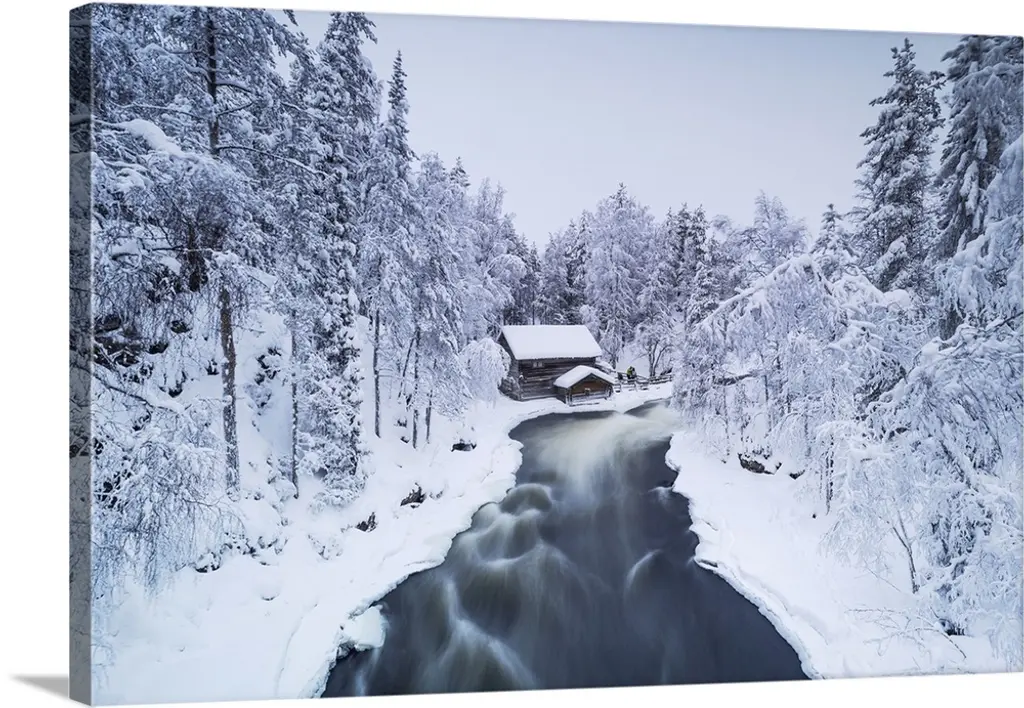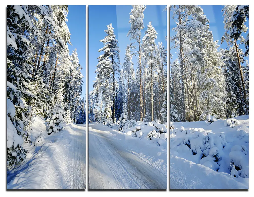 Foggy Winter Road In Slovenia, Large Landscape Canvas Art, 60"x28"