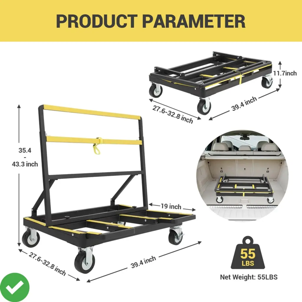 Foldable Dolly 2200 Lbs Capacity With Rubber Swivel Casters Folding Drywall Panel Cart Heavy Duty