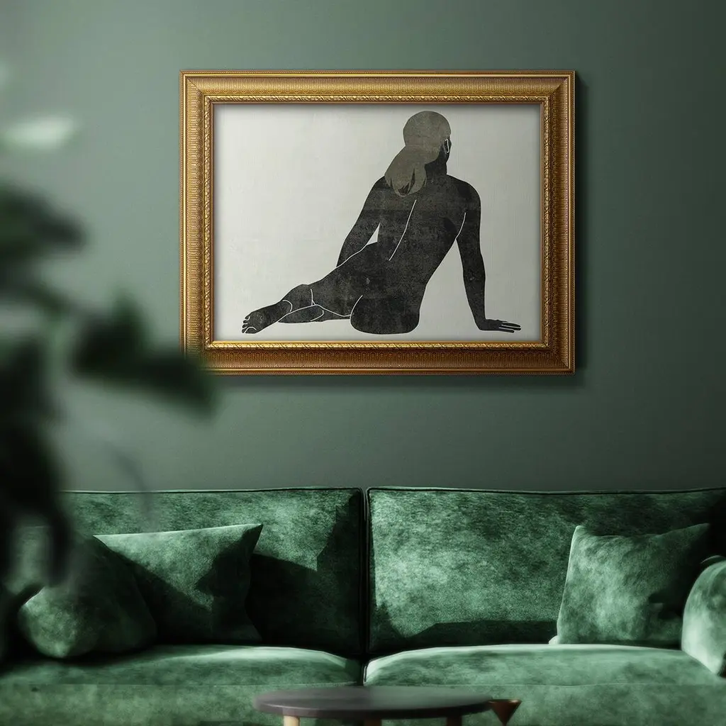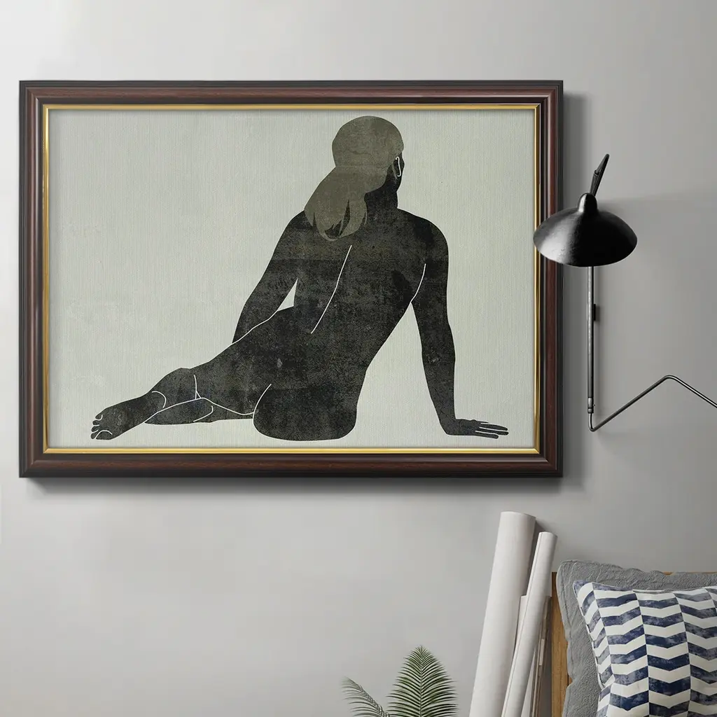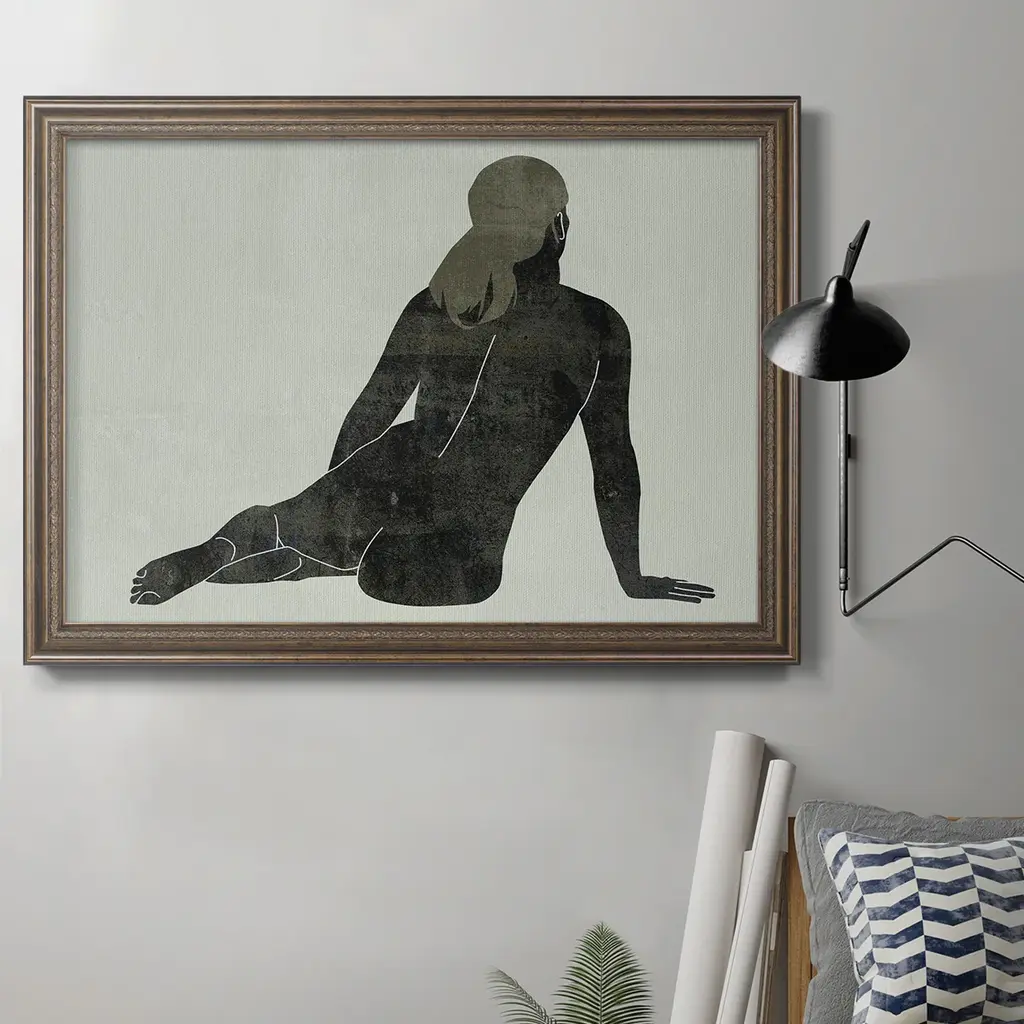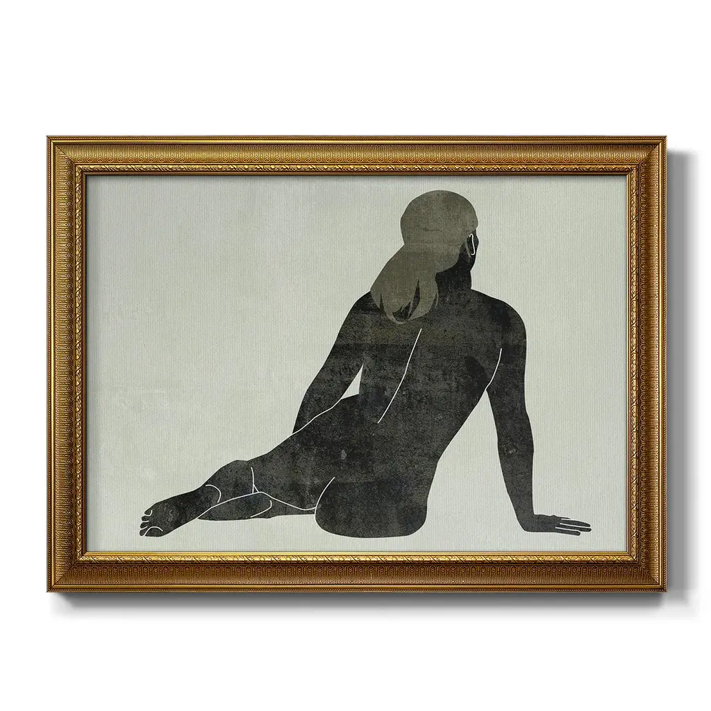 Folded Figure I Premium Framed Canvas- Ready to Hang A Premium Framed Canvas created to last. Framed in distressed wood and available in an array of sizes and colors Featuring a beveled a solid wood stretcher bar, each piece comes ready to hand 3 SIZES AVAILABLE 16''X20'' - Overall Size 18'X27'' - Overall Size 24''x36'' - Overall Size Each piece is made to order. Each piece comes with hanging hardware. Made in the USA Ready to Hang Giclee Paper Print Acrylic Glass Beveled Matt Board