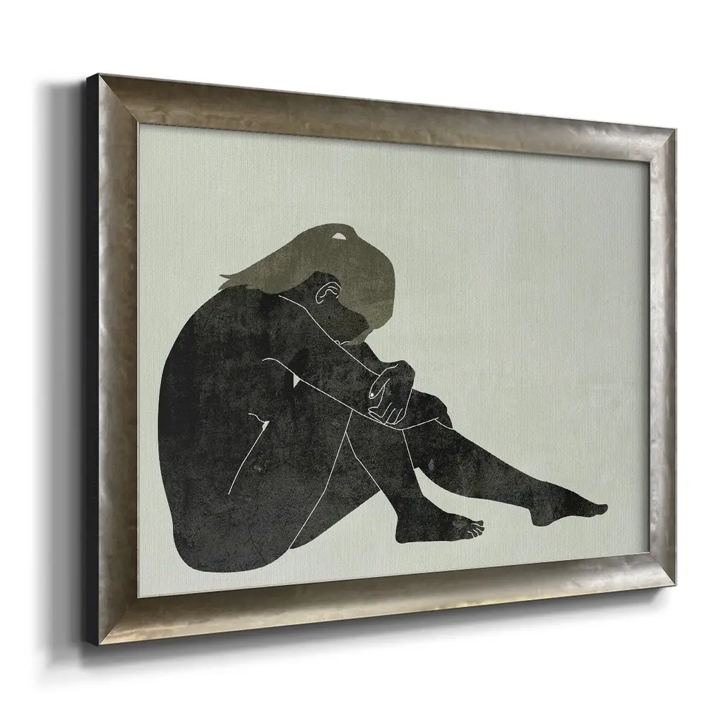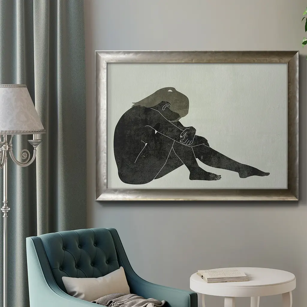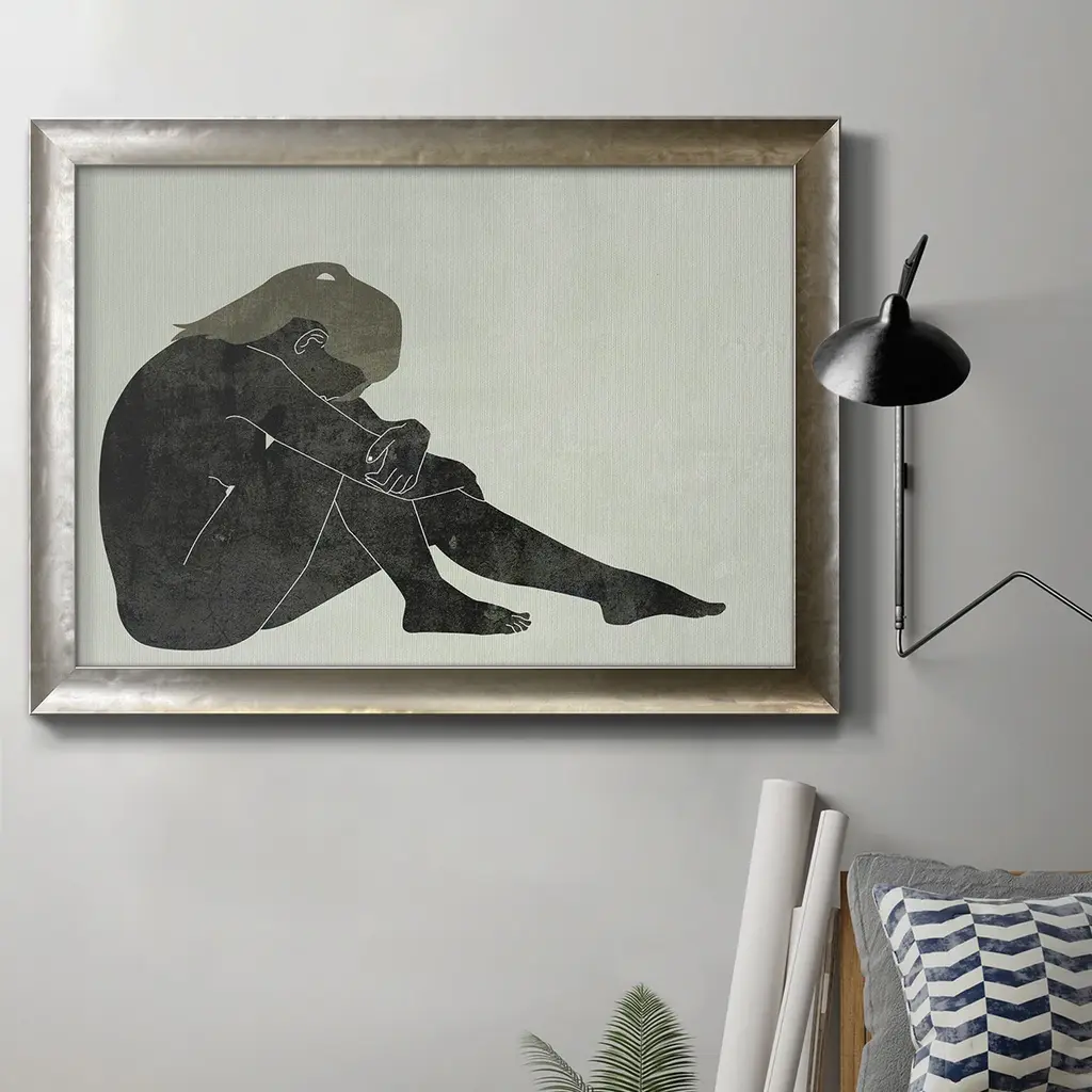Folded Figure II Premium Framed Canvas- Ready to Hang A Premium Framed Canvas created to last. Framed in distressed wood and available in an array of sizes and colors Featuring a beveled a solid wood stretcher bar, each piece comes ready to hand 3 SIZES AVAILABLE 16''X20'' - Overall Size 18'X27'' - Overall Size 24''x36'' - Overall Size Each piece is made to order. Each piece comes with hanging hardware. Made in the USA Ready to Hang Giclee Paper Print Acrylic Glass Beveled Matt Board