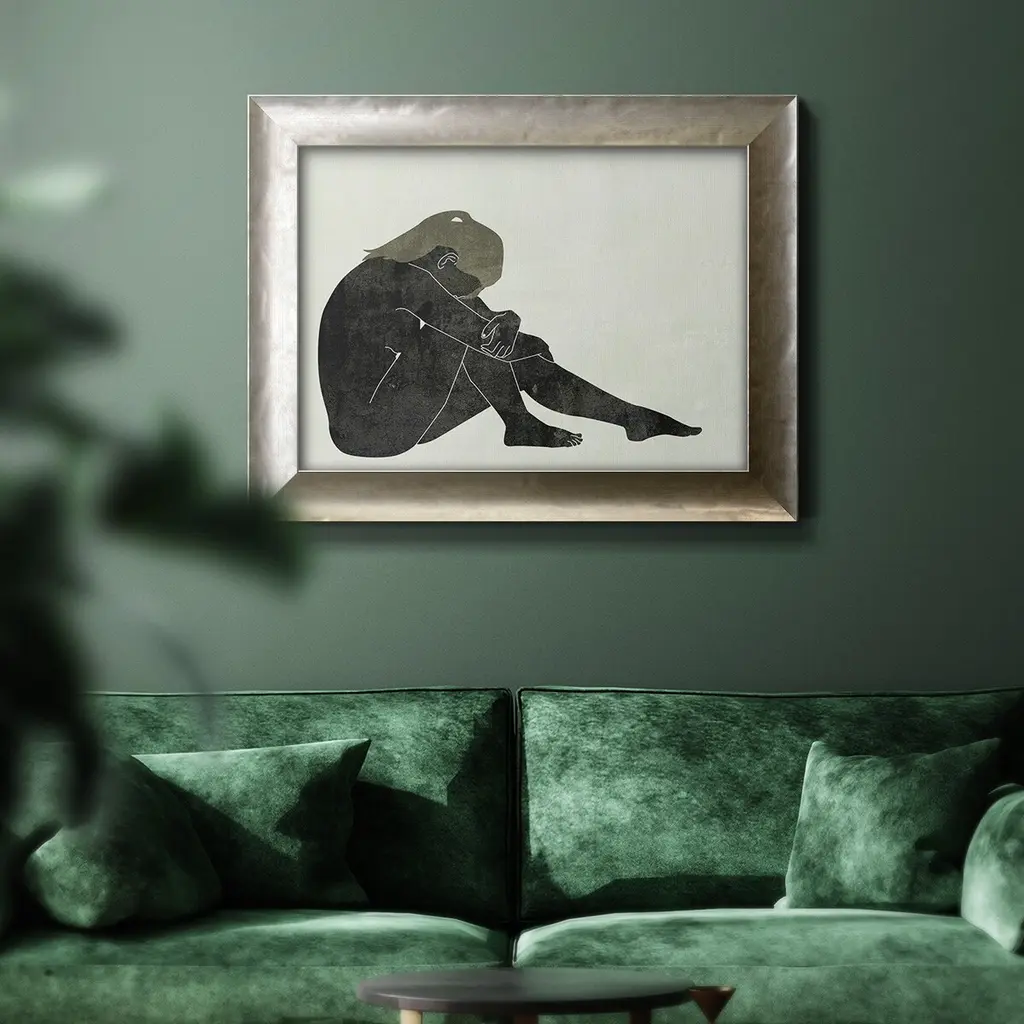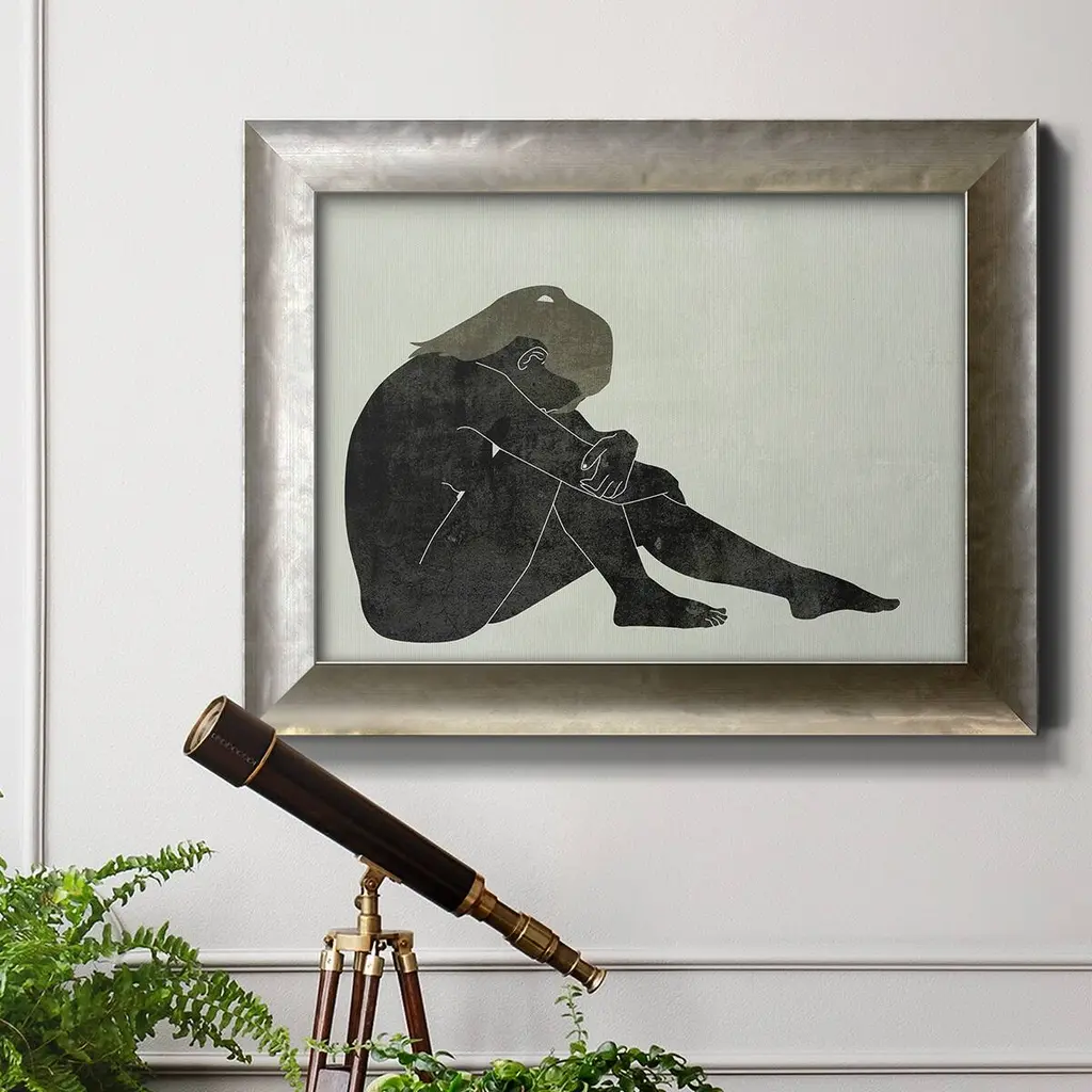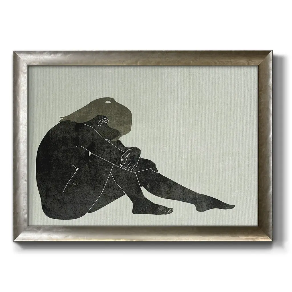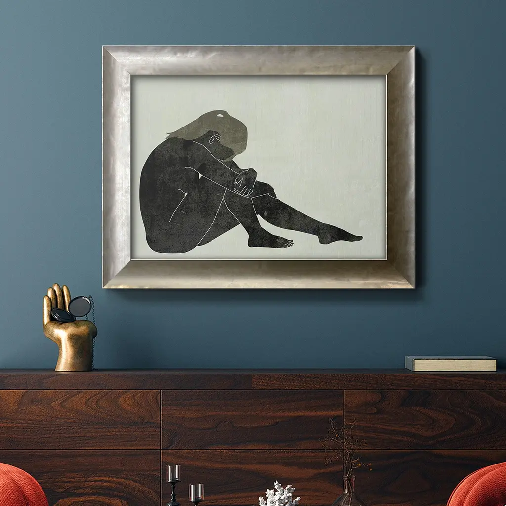 Folded Figure II Premium Framed Canvas- Ready to Hang A Premium Framed Canvas created to last. Framed in distressed wood and available in an array of sizes and colors Featuring a beveled a solid wood stretcher bar, each piece comes ready to hand 3 SIZES AVAILABLE 16''X20'' - Overall Size 18'X27'' - Overall Size 24''x36'' - Overall Size Each piece is made to order. Each piece comes with hanging hardware. Made in the USA Ready to Hang Giclee Paper Print Acrylic Glass Beveled Matt Board