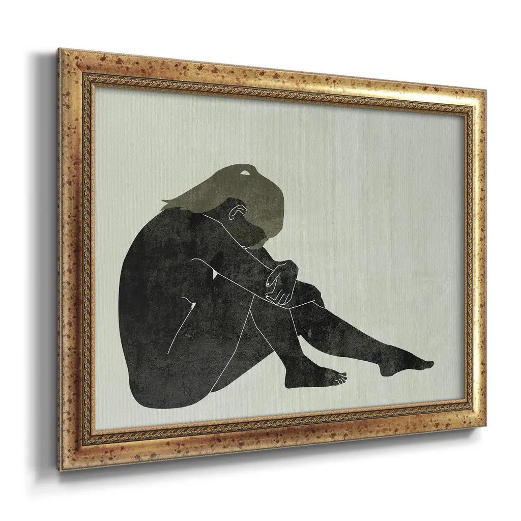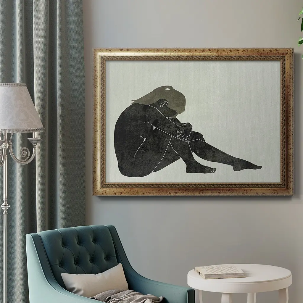 Folded Figure II Premium Framed Canvas- Ready to Hang A Premium Framed Canvas created to last. Framed in distressed wood and available in an array of sizes and colors Featuring a beveled a solid wood stretcher bar, each piece comes ready to hand 3 SIZES AVAILABLE 16''X20'' - Overall Size 18'X27'' - Overall Size 24''x36'' - Overall Size Each piece is made to order. Each piece comes with hanging hardware. Made in the USA Ready to Hang Giclee Paper Print Acrylic Glass Beveled Matt Board