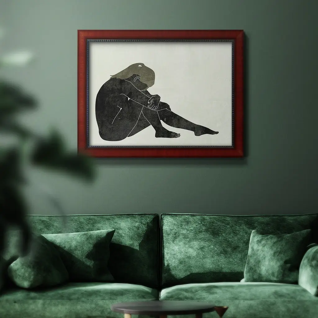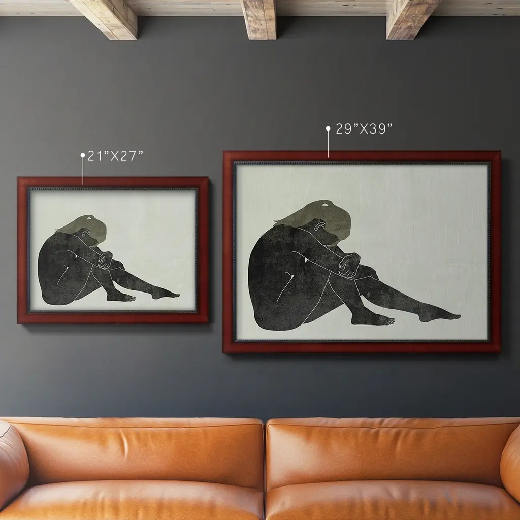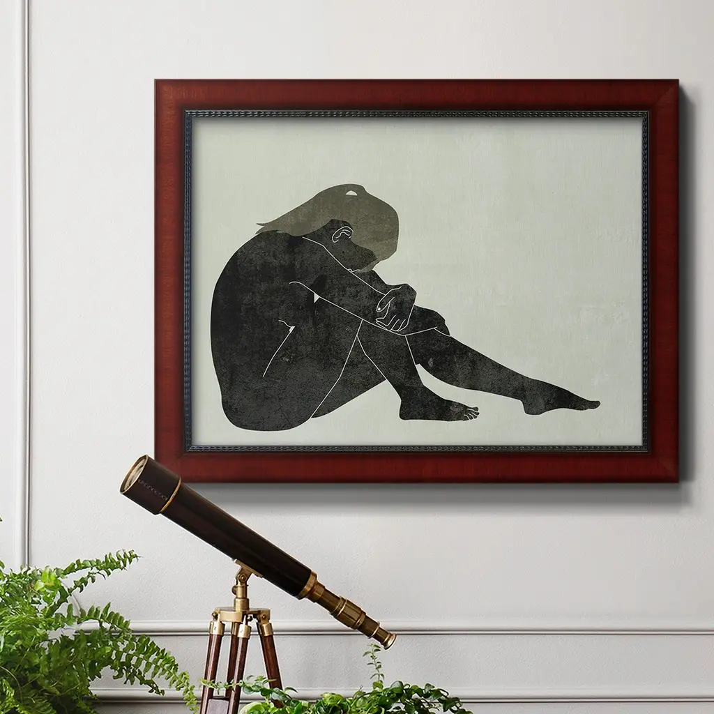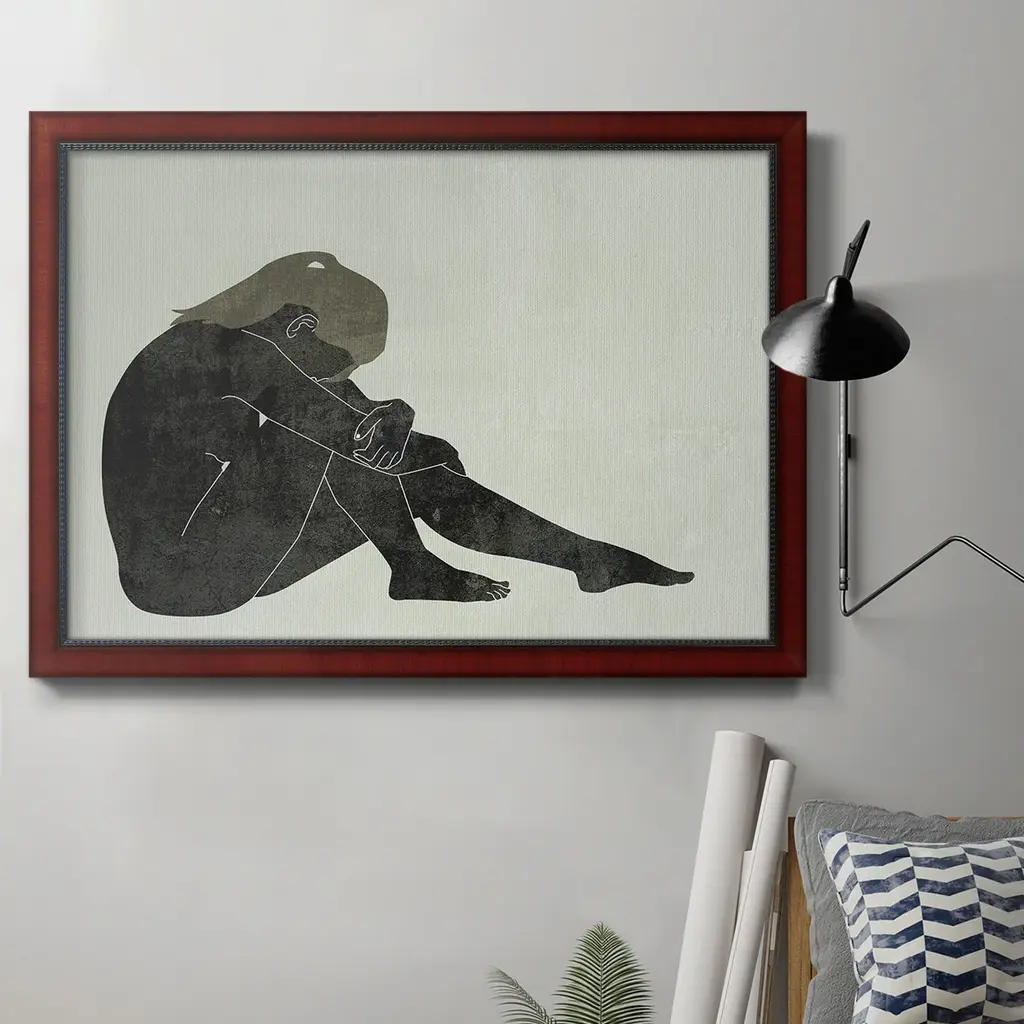 Folded Figure II Premium Framed Canvas- Ready to Hang A Premium Framed Canvas created to last. Framed in distressed wood and available in an array of sizes and colors Featuring a beveled a solid wood stretcher bar, each piece comes ready to hand 3 SIZES AVAILABLE 16''X20'' - Overall Size 18'X27'' - Overall Size 24''x36'' - Overall Size Each piece is made to order. Each piece comes with hanging hardware. Made in the USA Ready to Hang Giclee Paper Print Acrylic Glass Beveled Matt Board