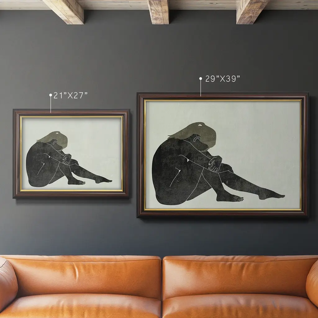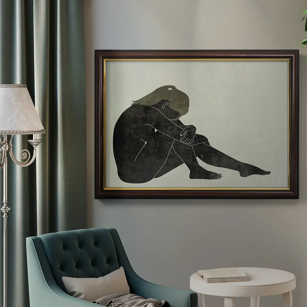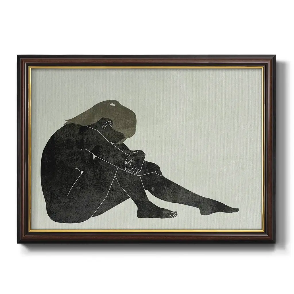 Folded Figure II Premium Framed Canvas- Ready to Hang A Premium Framed Canvas created to last. Framed in distressed wood and available in an array of sizes and colors Featuring a beveled a solid wood stretcher bar, each piece comes ready to hand 3 SIZES AVAILABLE 16''X20'' - Overall Size 18'X27'' - Overall Size 24''x36'' - Overall Size Each piece is made to order. Each piece comes with hanging hardware. Made in the USA Ready to Hang Giclee Paper Print Acrylic Glass Beveled Matt Board