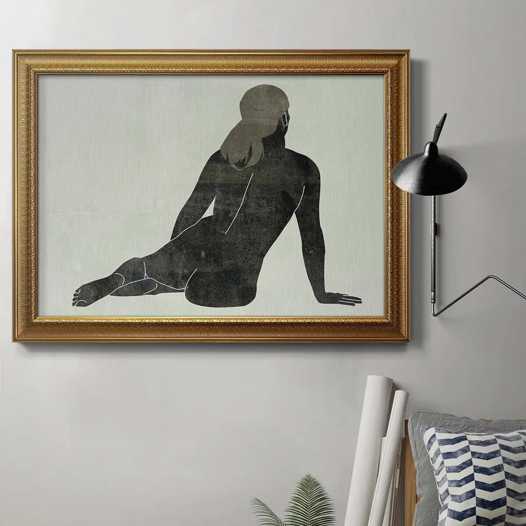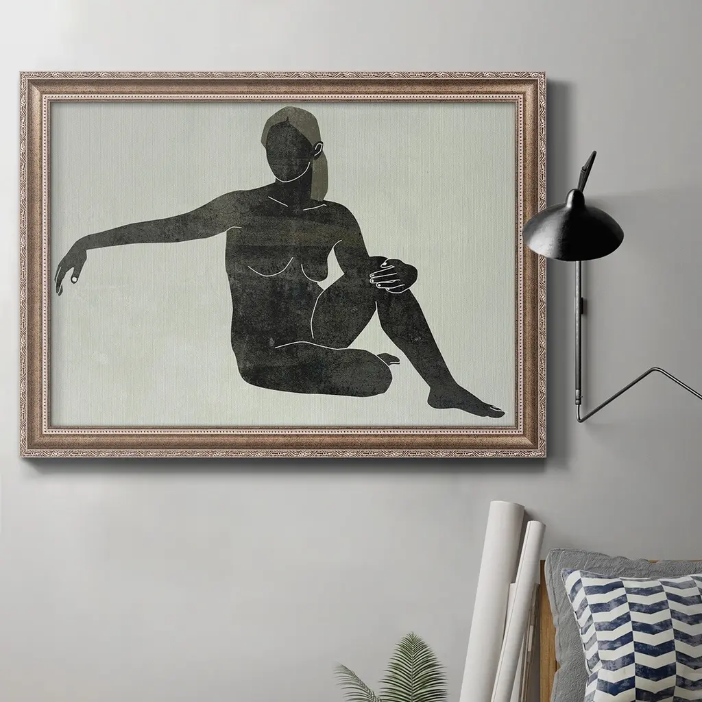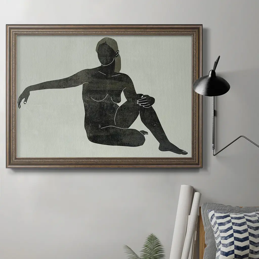 Folded Figure III Premium Framed Canvas- Ready to Hang A Premium Framed Canvas created to last. Framed in distressed wood and available in an array of sizes and colors Featuring a beveled a solid wood stretcher bar, each piece comes ready to hand 3 SIZES AVAILABLE 16''X20'' - Overall Size 18'X27'' - Overall Size 24''x36'' - Overall Size Each piece is made to order. Each piece comes with hanging hardware. Made in the USA Ready to Hang Giclee Paper Print Acrylic Glass Beveled Matt Board
